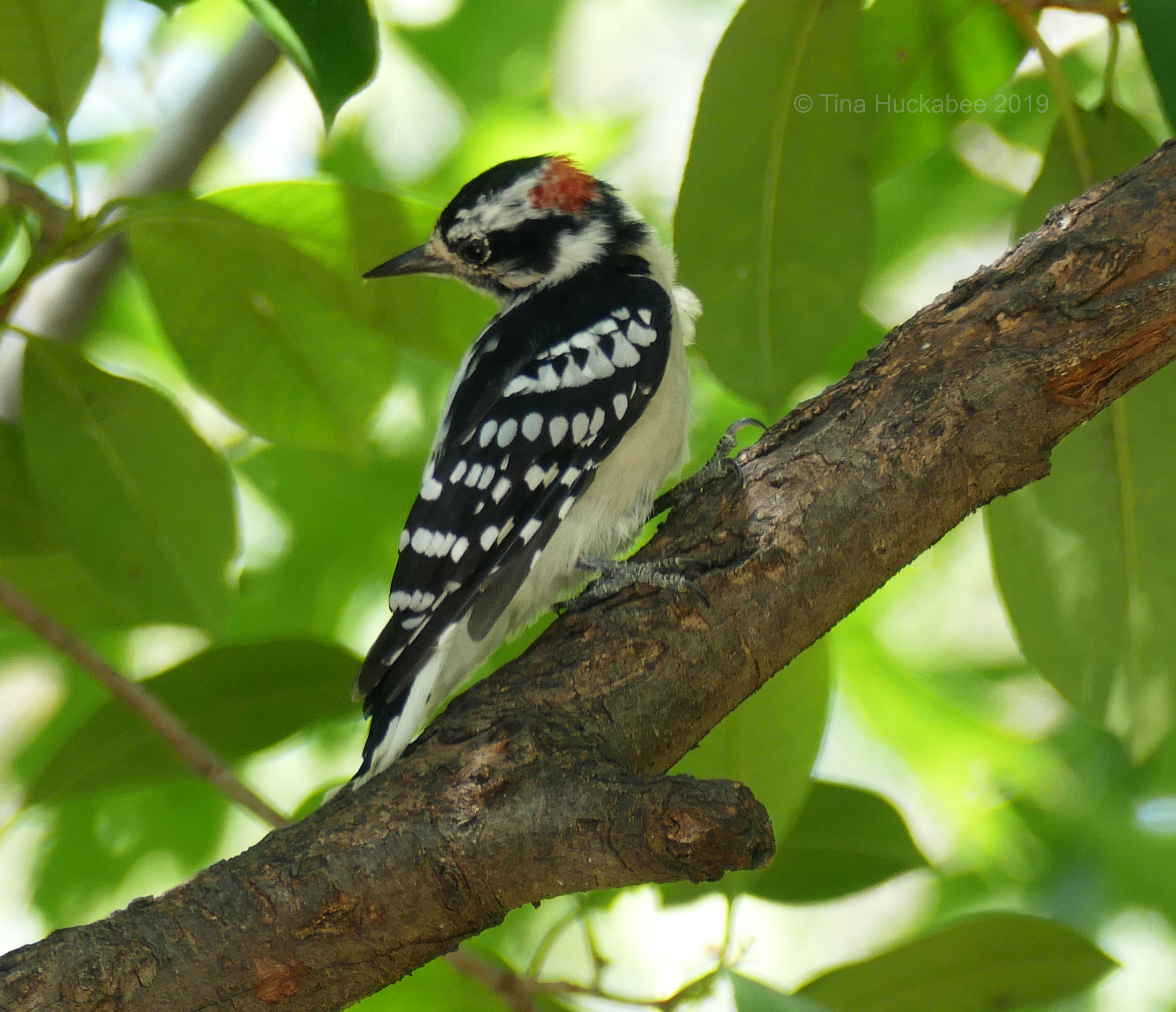 In recent weeks, my backyard birding has been focused on watching hungry, often noisy, fledglings who are out of the nest, but still learning from their parents. Most are in trees, squeaking, squawking, and flapping their wings, foliage obscuring baby birdie meal time. Occasionally, parent and chick visit the feeders together, like this mama and fledgling Downie Woodpecker, Dryobates pubescens, pair.