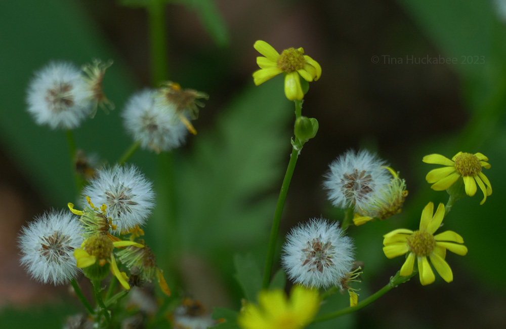 In the light shade of the Goldenball Leadtree, sits a stand of more golden goodness, a small patch of Golden Groundsel, Packera obovata. Diminutive ray flowers accompany the larger goldenball blooms in their early spring show. Once the blooms are done, cottony-soft seed balls appear, awaiting wind, landing in a new place.