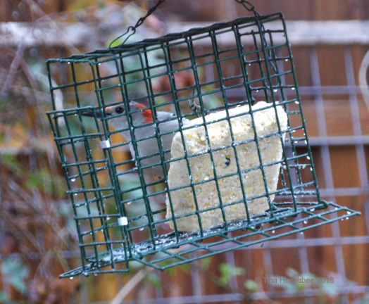 I don’t see the female as often, but snatched a quick shot of her one day as she nibbled at the suet.