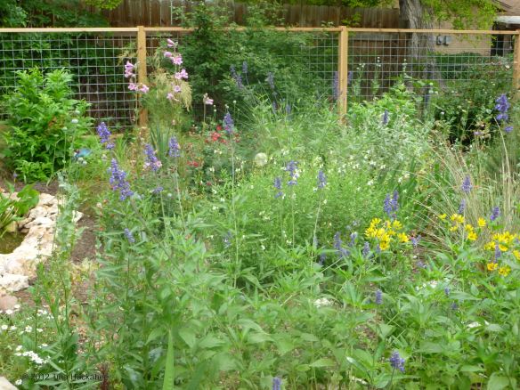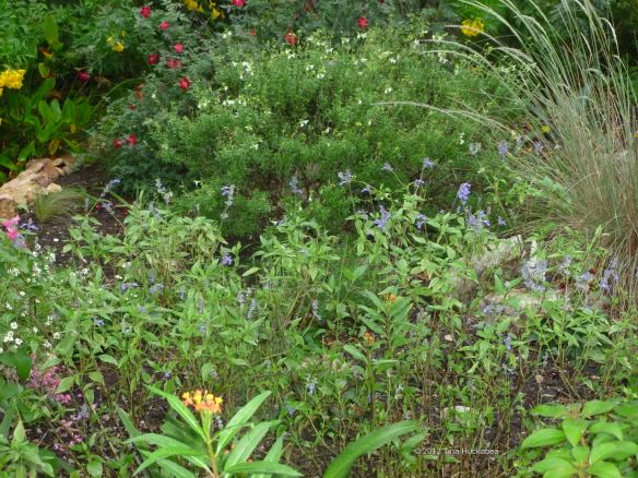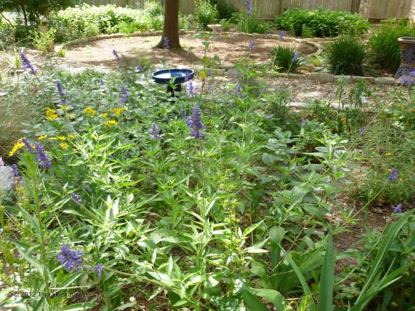 Both the Mealy Blue Sage and the Henry Duelberg are favorites of bees and butterflies, as well, though I’ve noticed more pollinators visiting the Henry Duelberg than the Mealy Blue. I planted two, four-inch pots of Henry Duelberg in the fall of 2010 and they have re-seeded, so I have six of these plants now. Thus far, all of mine are blue–none have hybridized to the white ‘Augusta’ form.