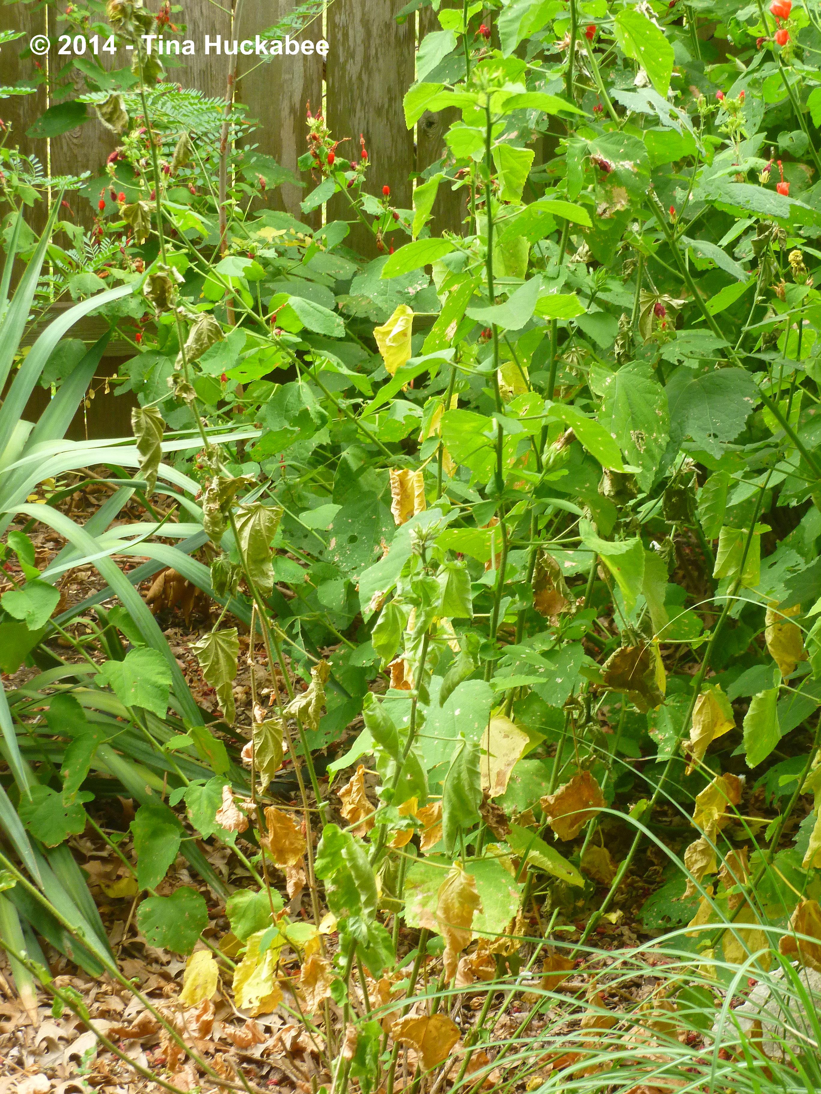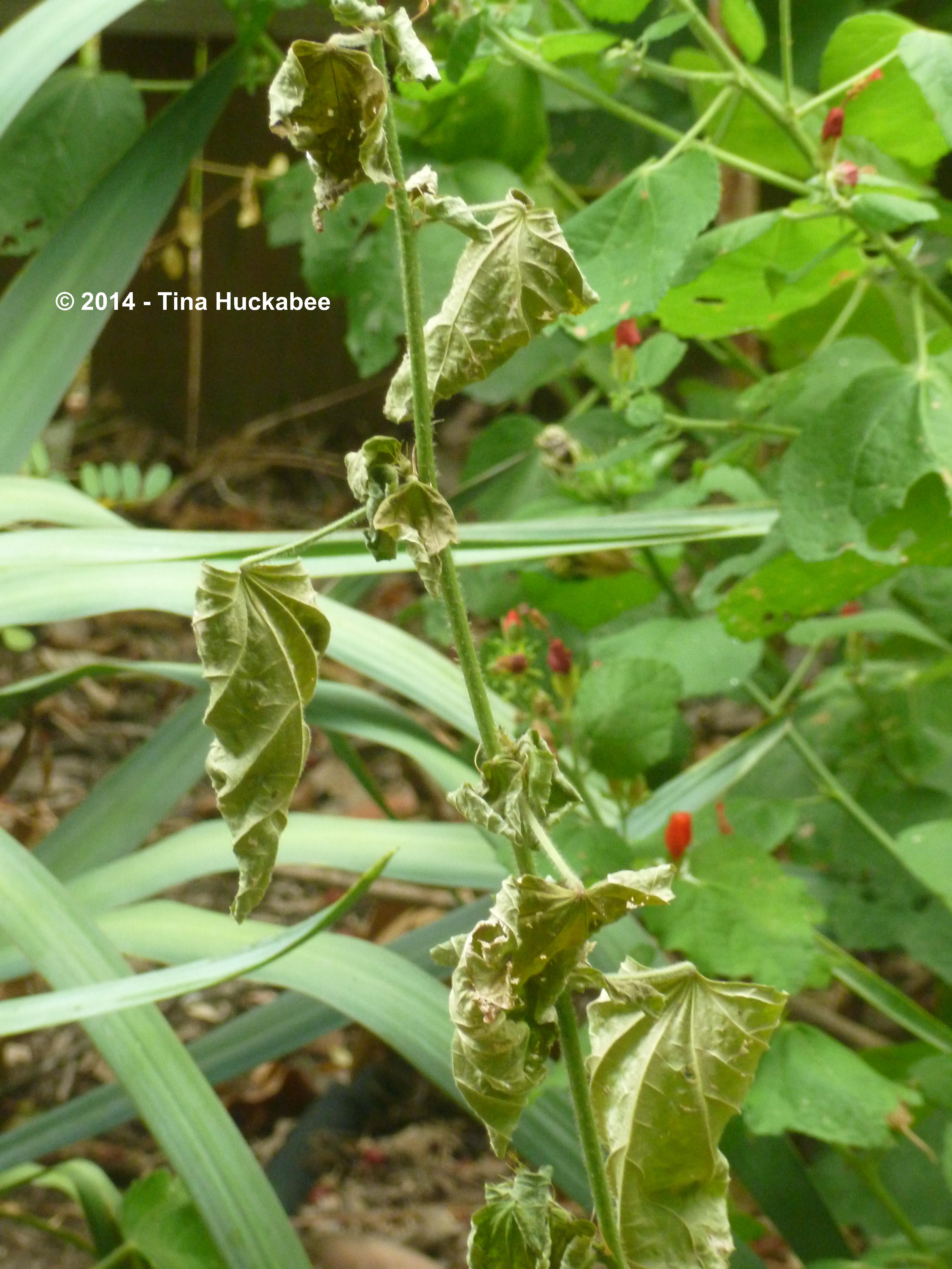 The trellis is a bit wonky, even for me. The honeybees and I eagerly await the apex of Coral Vine’s blossoming period–soon, very soon!!