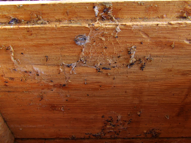 What’s left is a bit of Wax Moth webbing decorated by larval frass (poop, for the uninitiated).