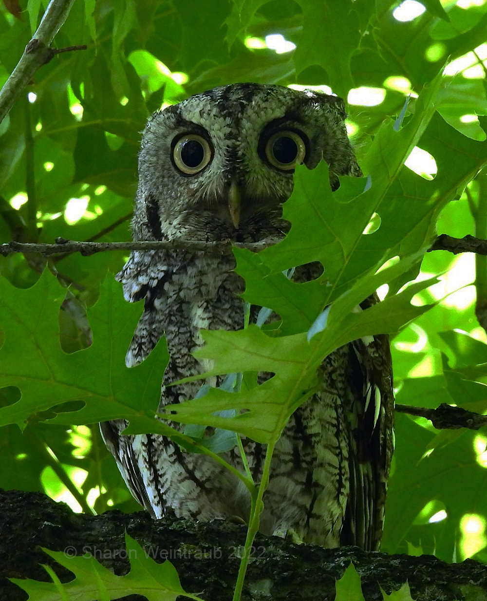 For the last week, in the wee early morning hours, just at sunrise, I’ve witnessed an Eastern Screech Owl, Megascops asio swoop to the box for inspection. She’d perch at the entrance hole, sit a bit, then climb in for a look-see. Usually, she flew back to a neighbor’s tree to spend her day. Today, she climbed in and stayed in the box for the day.
