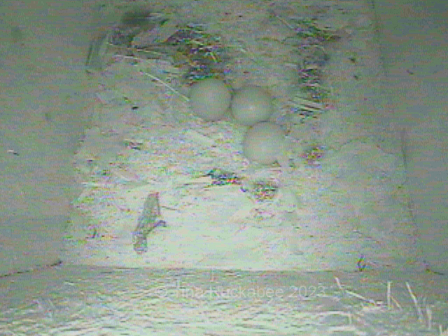 I’m pretty sure this is the same female that we’ve hosted in the box for the last few years. She loves to be outside, perched in trees, even after the sunrise. I call her Uptown Girl. Her mate is Shy Guy and so far, I haven’t seen him. These two have successfully brooded chicks for the past two to three years. Last year, shortly before the eggs were to hatch, the nest box was raided, probably by a fox. After they abandoned our box, I discovered that they’d settled in a neighbor’s tree. I watched for several weeks and was rewarded by watching two fledglings learn to fly successfully under the careful tutelage of their parents. I hope they survived summer and have found their own territory and mates, ready to raise families.