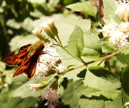 Fiery skipper (Hylephila phyleus) nectaring on White mistflower.