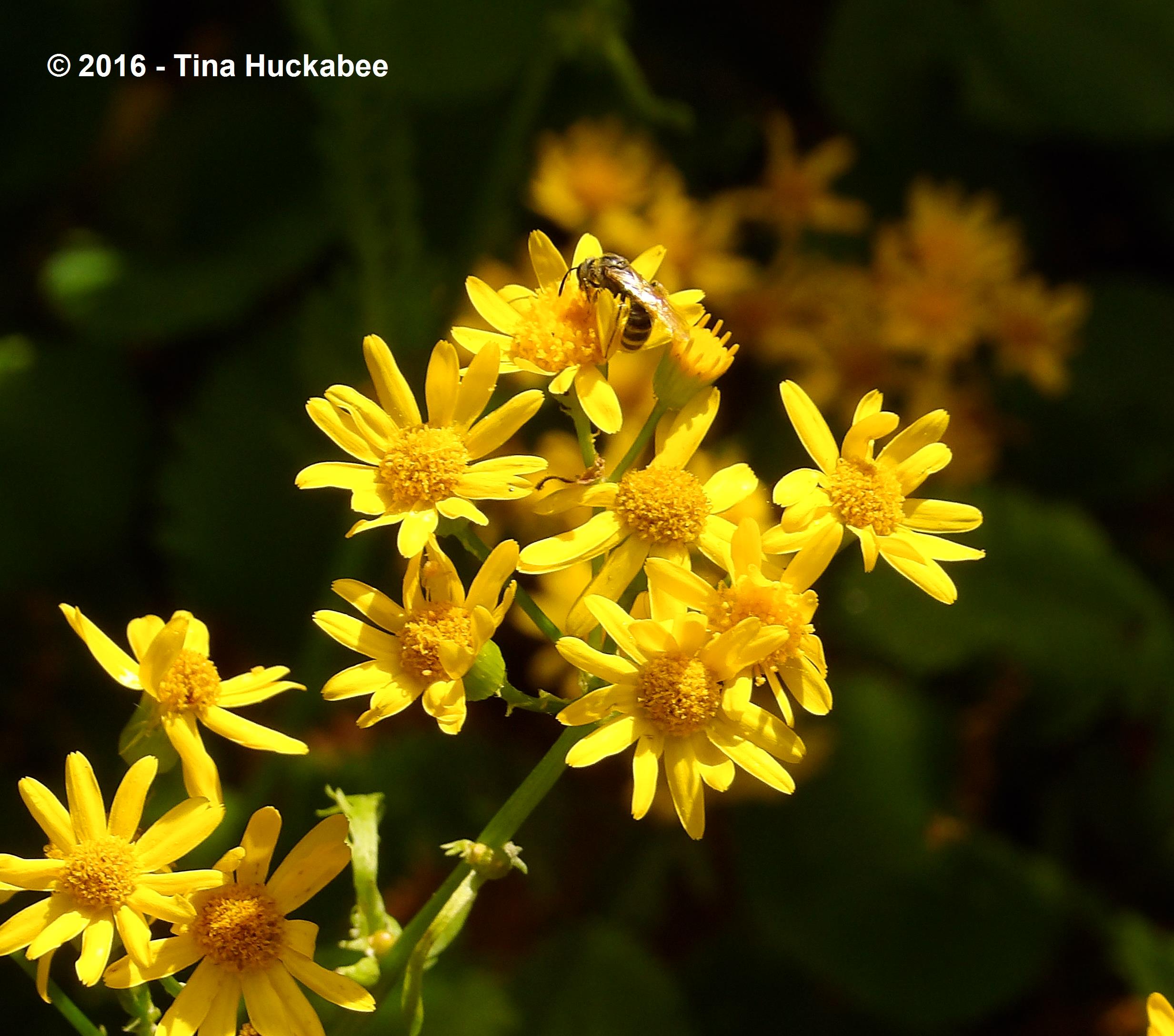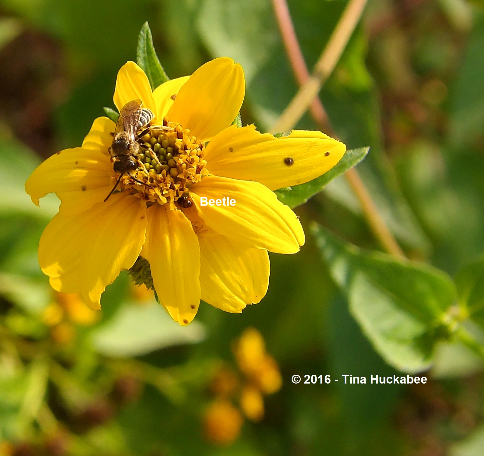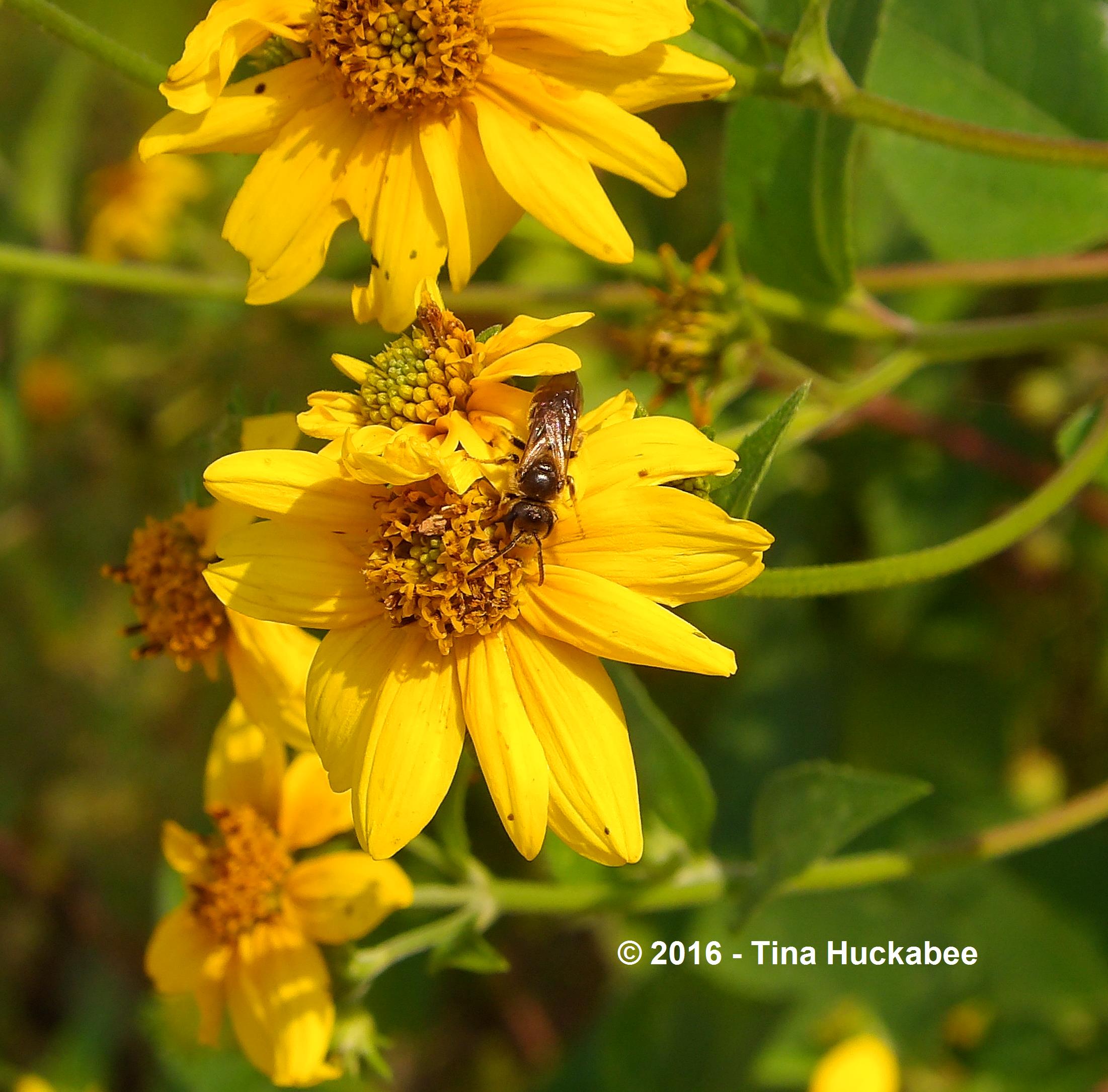 Though rare, this species of wild bee are seen in this part of Texas. I was pleased to watch her work the flowers of a Goldeneye, Viguiera dentata.