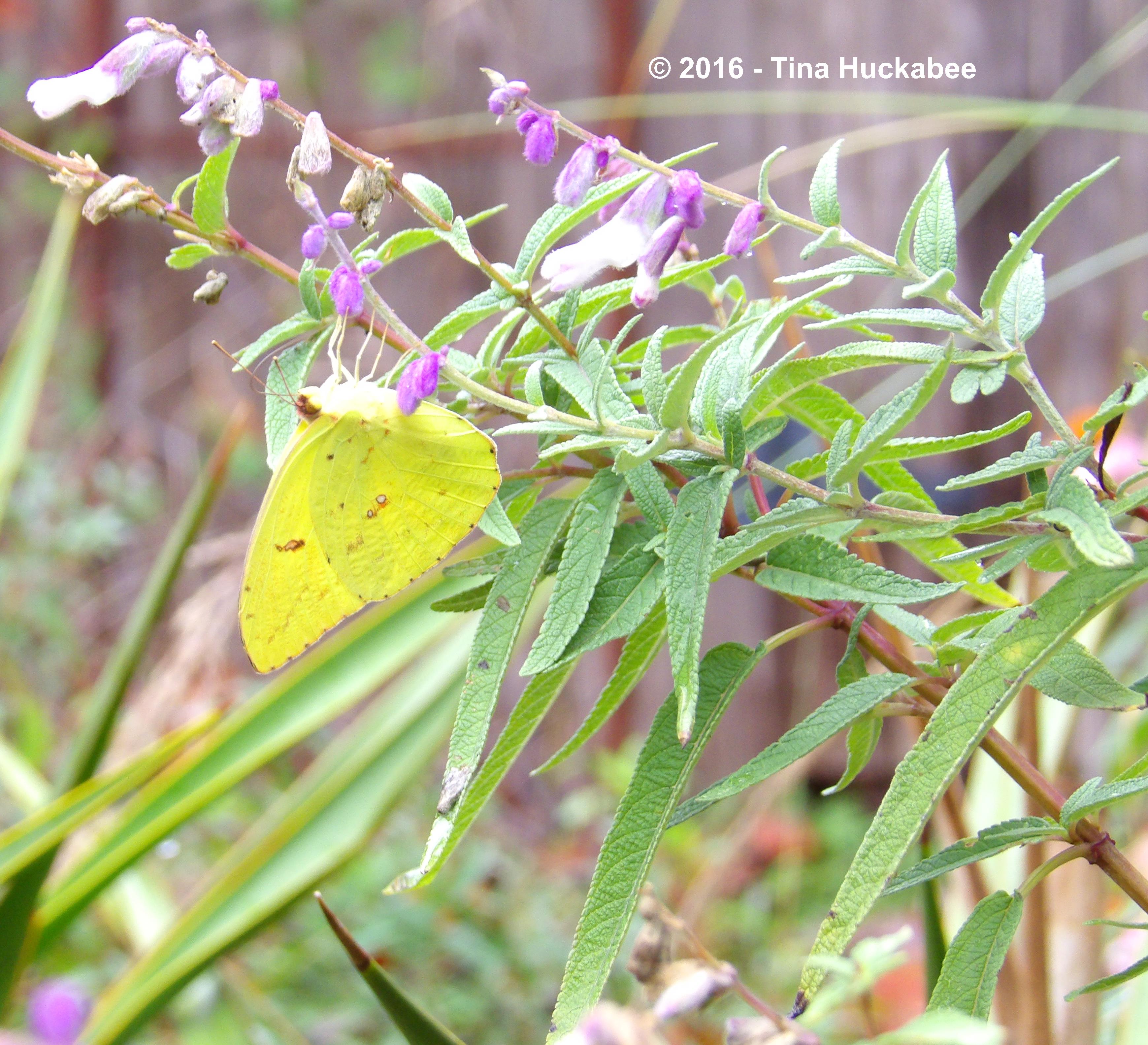 Another cheery autumn yellow butterfly common in Texas most years is the Cloudless Sulphur, Phoebis sennae.