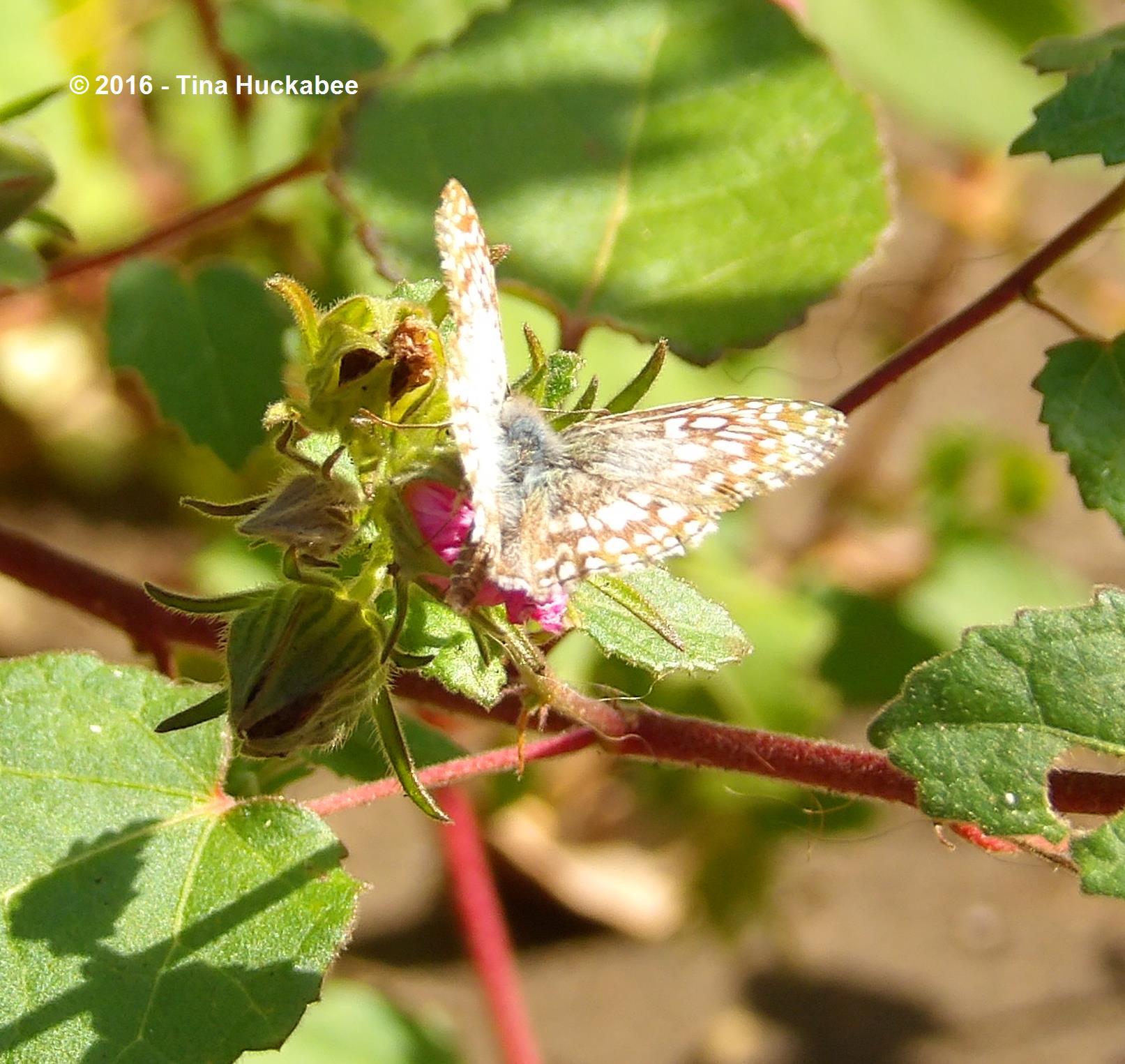 It enjoyed the bounty of a Rock rose flower, which is a member of the family (Malvaceae) that this butterfly requires as its host. The checkerboard pattern on the upper wings,