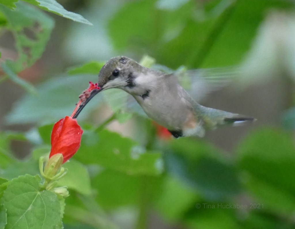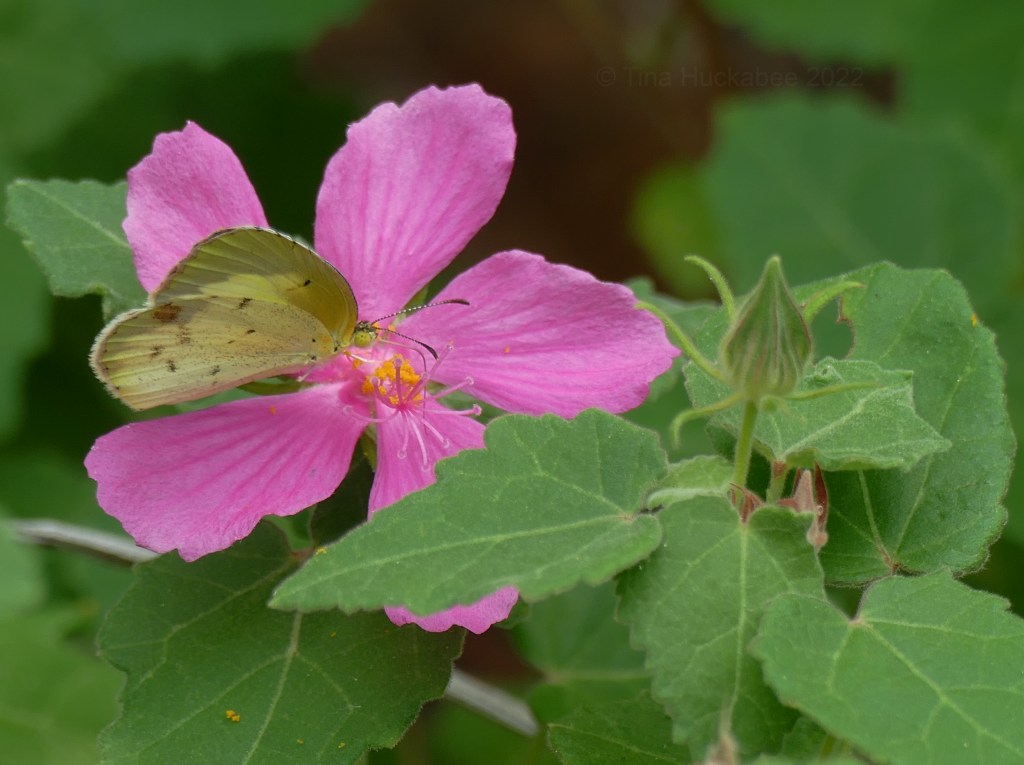 In June and July the sunflowers and basket flowers have towered over the garden. Pollinators are busy from sunrise to sunset: bees buzzing, butterflies flitting, and hummingbirds chasing one another, vying for dominance over disputed territory. Pretty pink- blossomed Rock Rose, Pavonia lasiopetala and the crimson blooms of Big Red sage, Salvia pentstemonoides, rest below the taller plants at the corner of the garden.