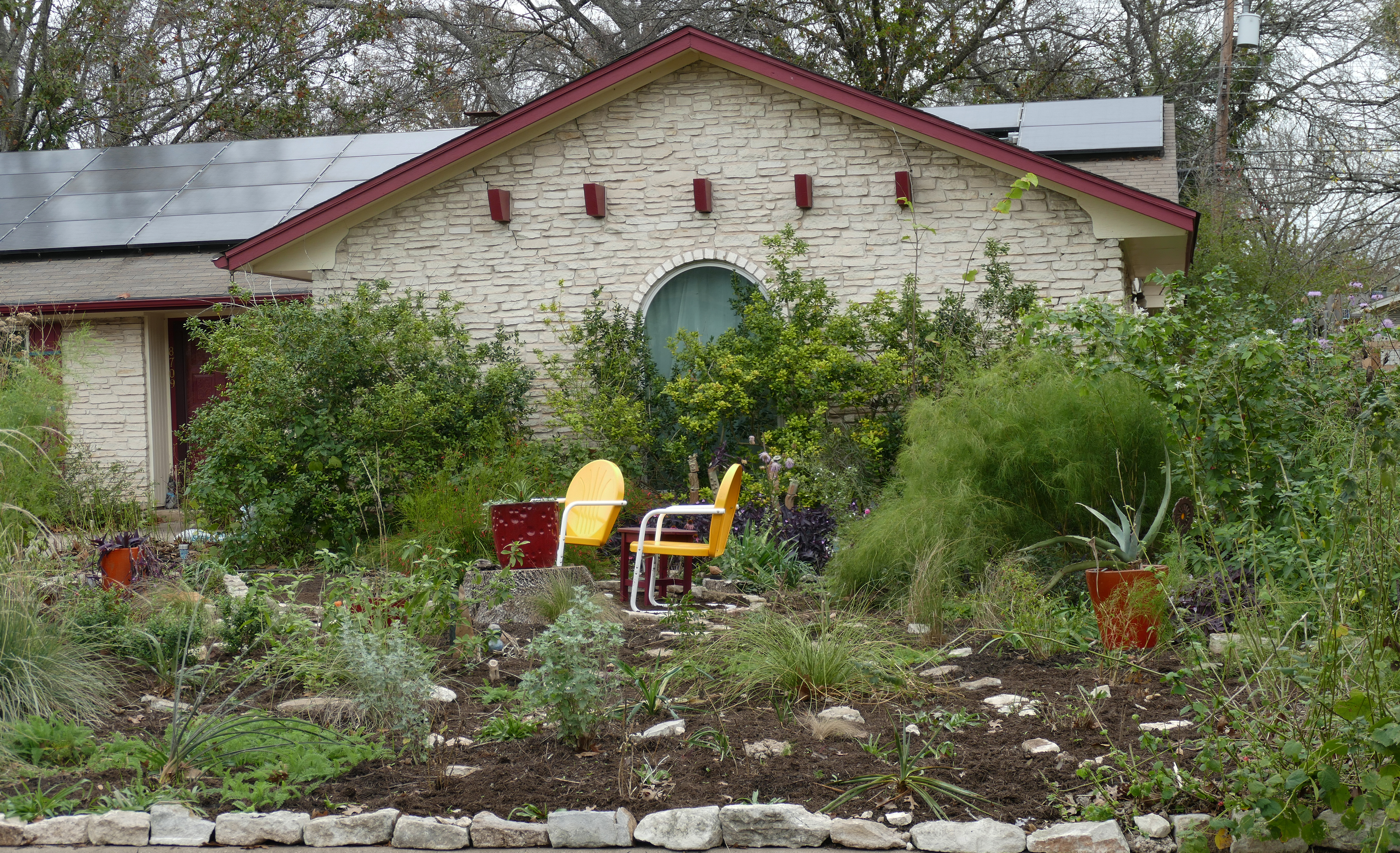 Crispy critter! Last summer, which was a more ‘normal’ summer, the ground-cover grew well, lush and green, blooming beautifully in autumn. But this summer has been particularly hot; Austin just recorded its hottest 7 day streak ever and we’re breaking heat records regularly. The mistflower isn’t up to that kind of grilling. There’s also no water at this corner; the soaker hose is situated about three feet away. So what to plant there? I’ll probably go with one of the smaller native grasses or something like a Blackfoot Daisy, Melanpodium leucanthum or a small native yucca–all sun and heat lovers needing minimal water and care.