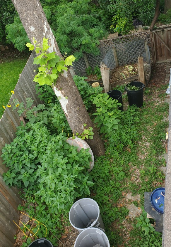 I’ve allowed some late summer and autumn wildflowers to seed out in this area, where I also house yard waste bins, extra mulch, and other garden paraphernalia. This area becomes messy, but sometimes, I tidy it up. Sometimes.