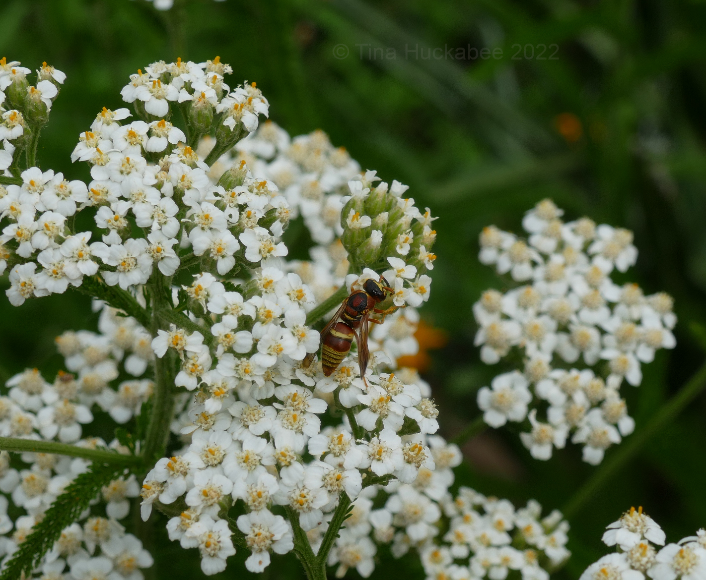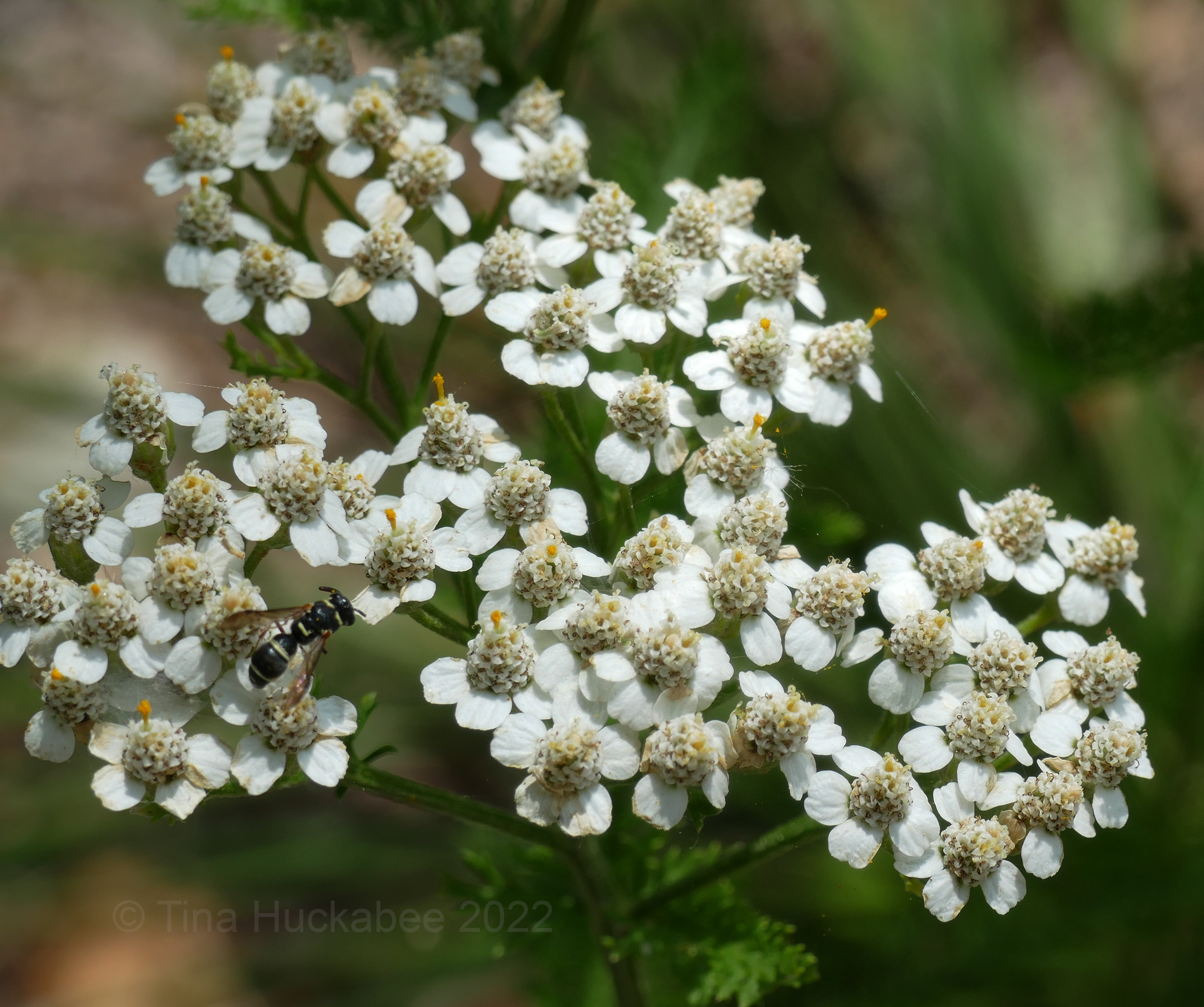Wasps comprise a huge group of insects and are often maligned because they sting. But like this Euodynerus megaera on Yarrow, Achillea millefolium, they are common flower visitors and important pollinators.