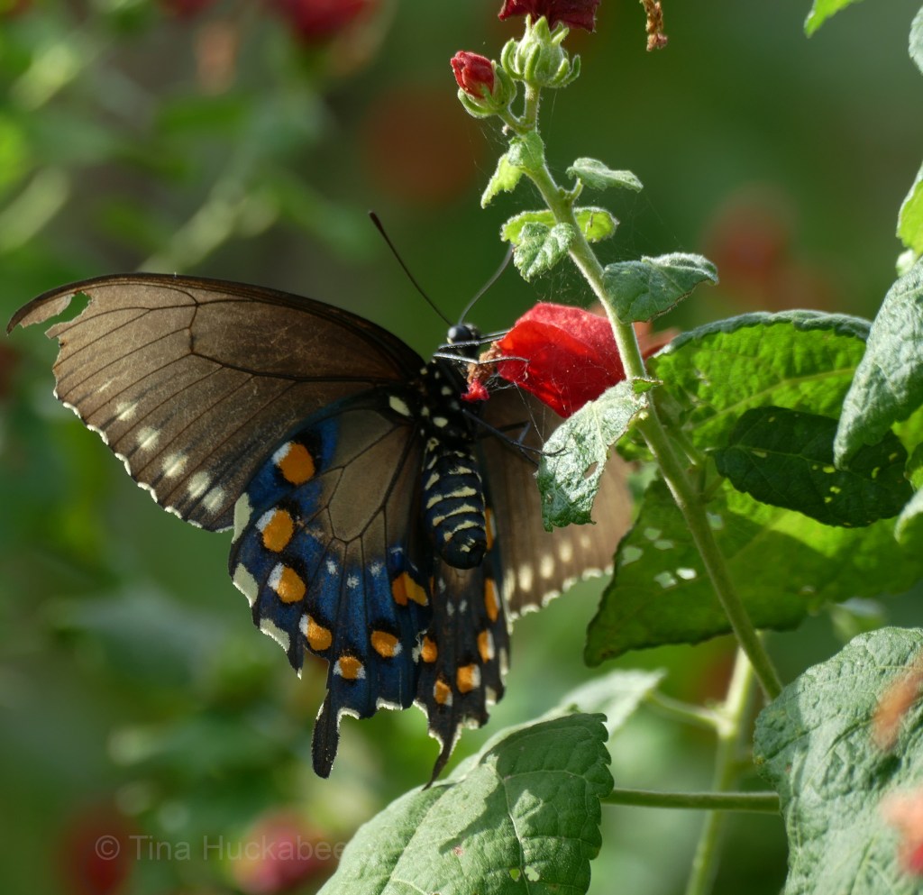 For most of us, it’s the big, bodacious butterflies that we notice in a garden. And why not? They’re stunning as they waft through the garden, a pleasure to observe! I was pleased to capture the underside of this Pipevine Swallowtail, Battus philenor, as it sipped from a Turk’s Cap, Malvaviscus arboreus var. drummondii.