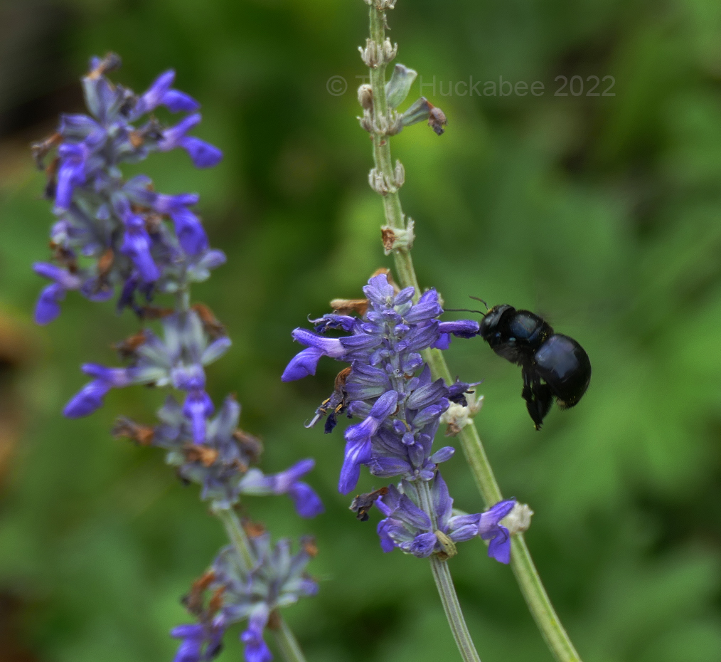 While most blooming plants will attract some pollinators, native plants are particularly important sources of food for variety of pollinators. This Henry Duelberg Sage, Salvia farinacea ‘Henry Duelberg’, hosts a native Horsefly-like Carpenter bee, Xylocopa tabaniformis.