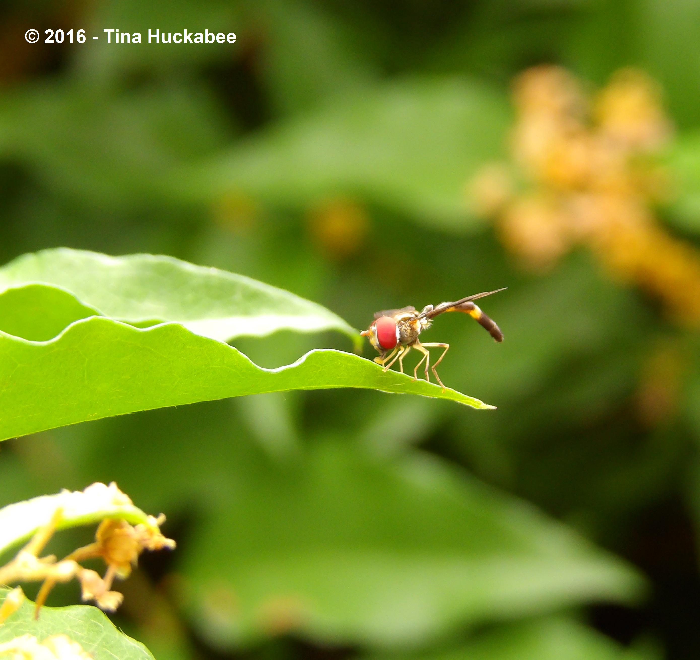 Not only did butterflies and moths grace my garden, but plenty of Syrphid, or Flower flies, appeared too. For the most part, Syrphid flies haven’t been as numerous in the garden this year. But recently I’ve seen many of this particular kind, the Distinctive Syrphid, Ocyptamus fascipennis.