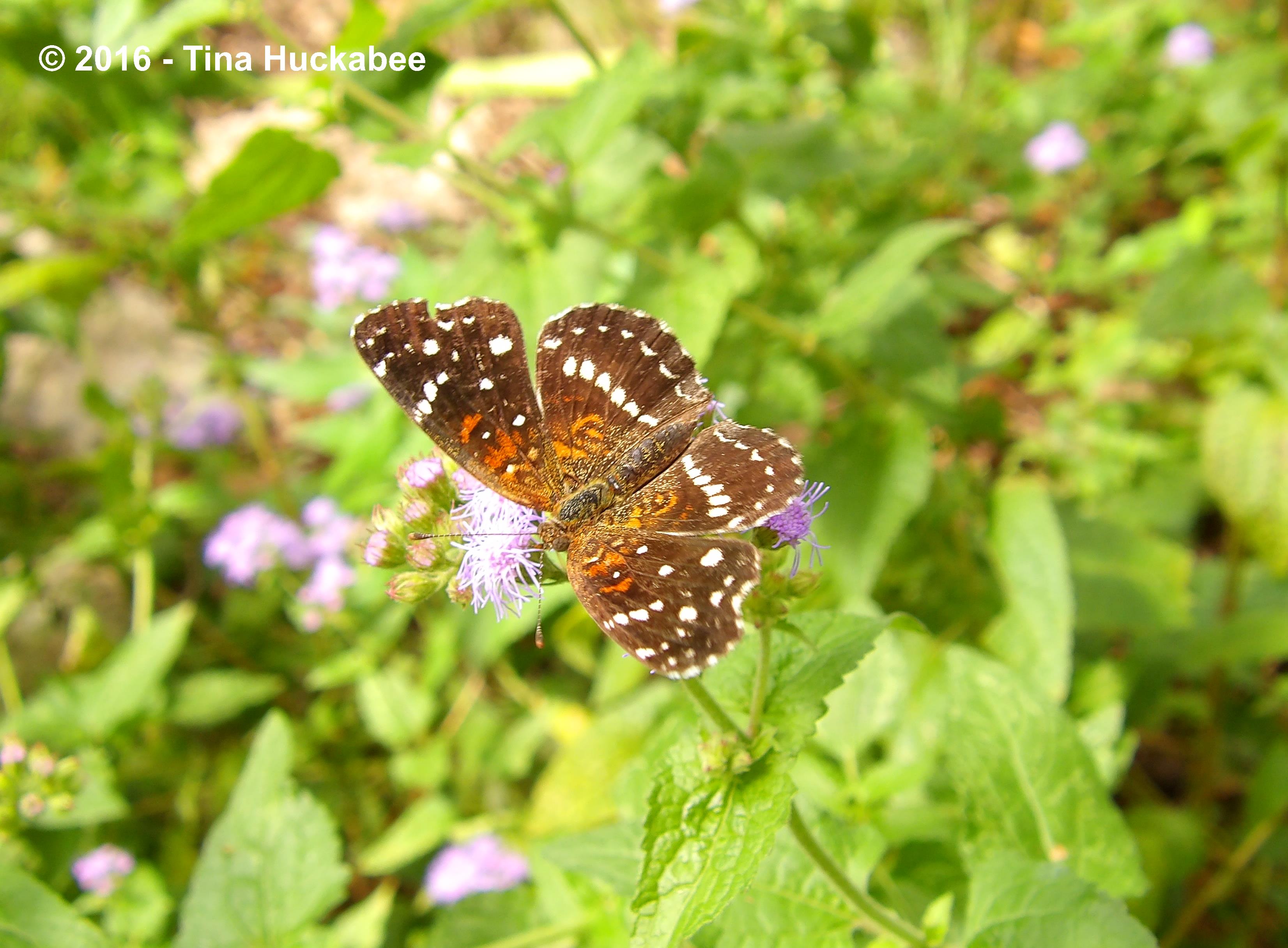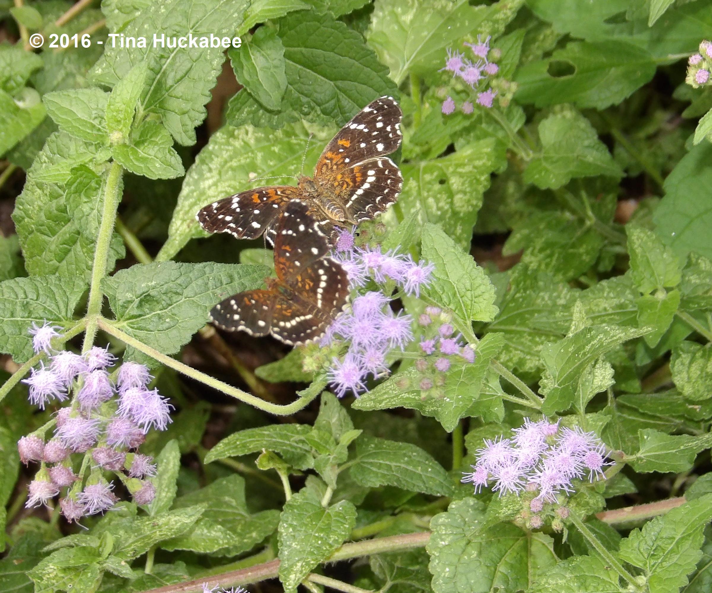 …mostly hanging out around the Blue mistflower, Conoclinium coelestinum. I knew that I’d seen a photo of this kind of butterfly–somewhere–but couldn’t recall where. After some sleuthing, I identified this species as a Common mestra, Mestra amymone. Eventually, I remembered that I’d seen photos of the mestra on the FB page of The National Butterfly Center, which is located in Mission, Texas. Primarily a butterfly of South Texas, Mexico and South America, they will stray northward–and so they did, right into my little garden! They favored the Blue mistflower, but I also saw them nectaring at the Plateau goldeneye and Turk’s cap, too.