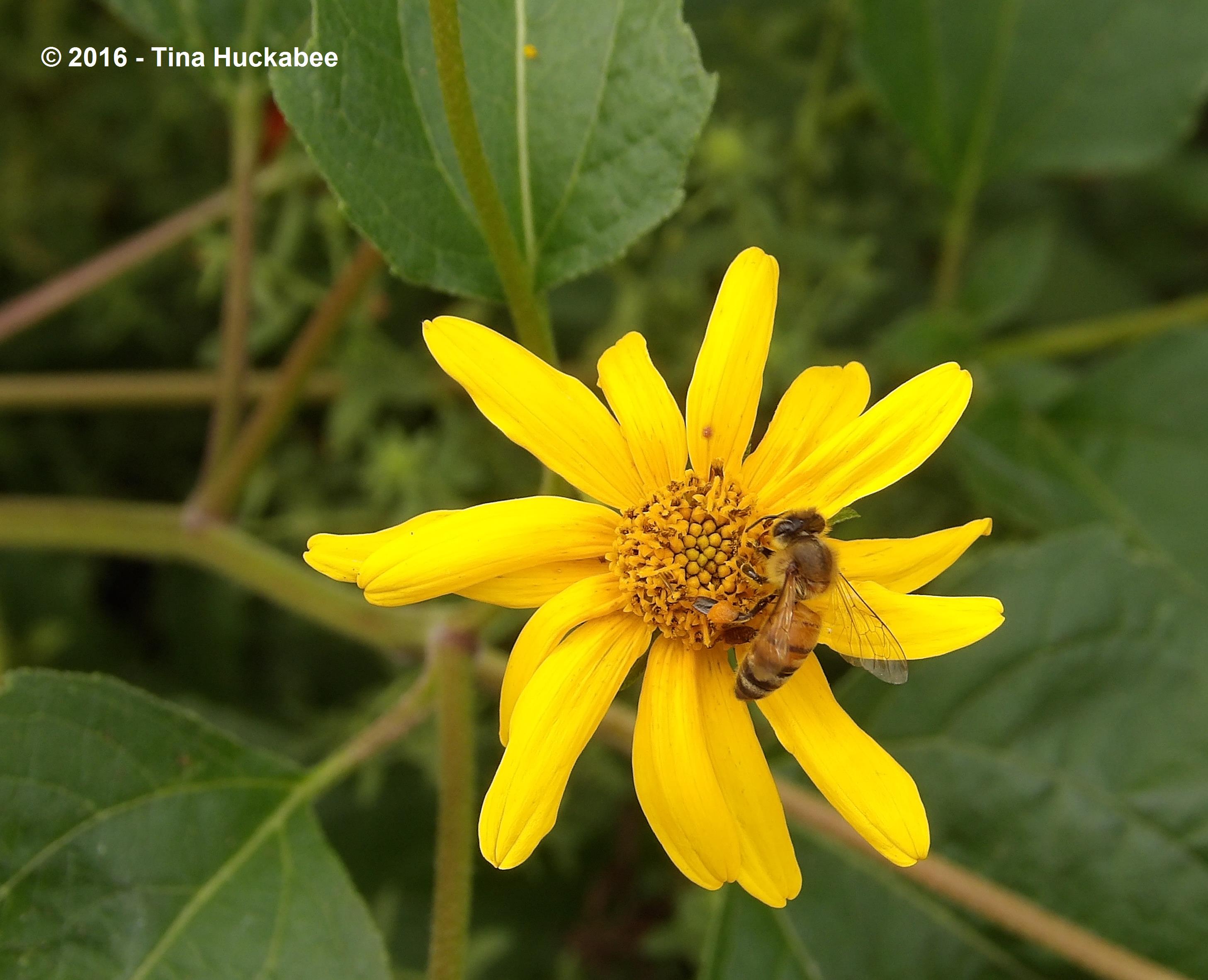 Honeybees (from my three hives) busily worked at the bloom-heavy Plateau goldeneye, Viguiera dentata, as well as everything else, preparing their honey stores for winter.