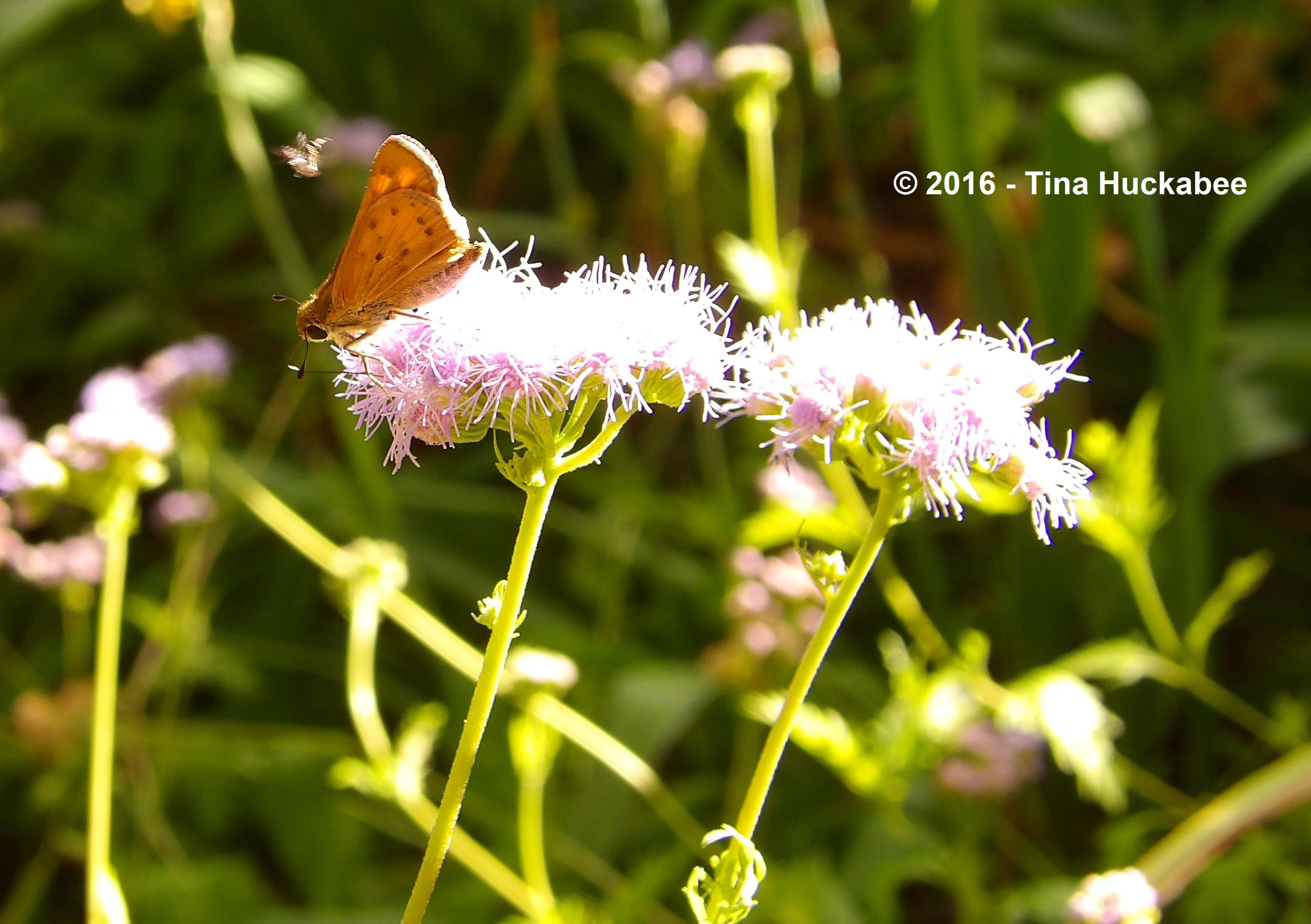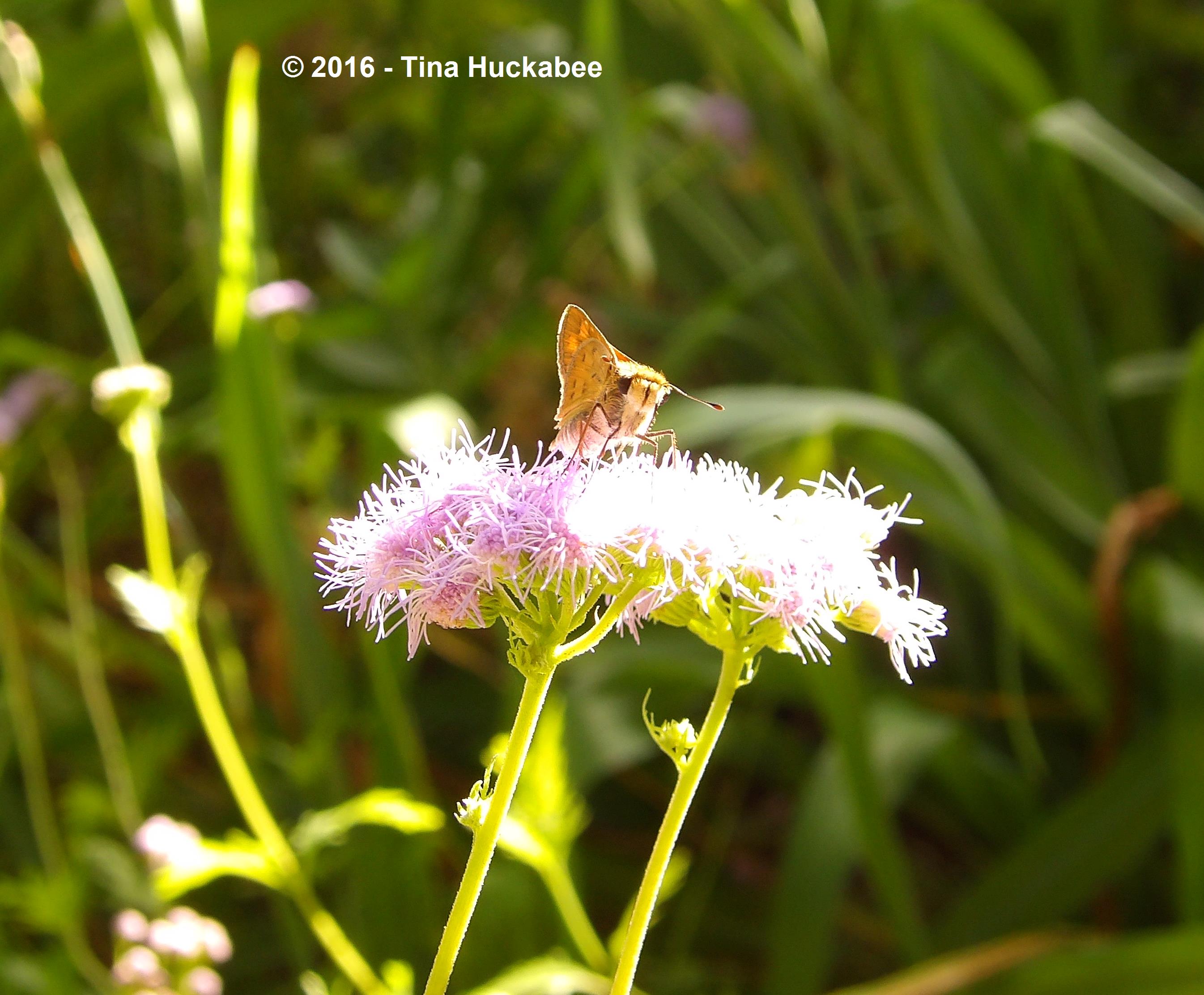 Other fans of the Gregg’s mistflower are the many Clouded Skipper, Lerema accius butterflies which regularly tour the garden. These skippers have been active throughout the warm season this year.