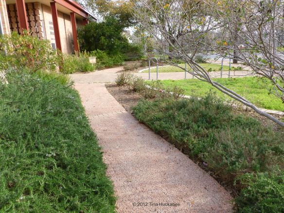 And the Autumn Sage (Salvia greggii) and other evergreen native shrubby plants are pruned into tidy balls,