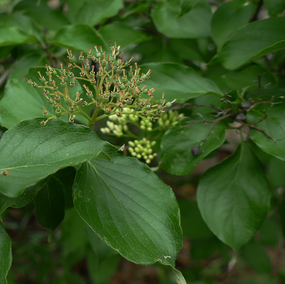 By August, the small green spheres will grow larger and milky-white. Blue Jays, Northern Mockingbirds, migrating neo-tropical birds, plus squirrels and other mammals will feast on juicy fruits. The fruits of the dogwood are drupes: skin with a fleshy outside and seeds inside. Drupe is a fun word.