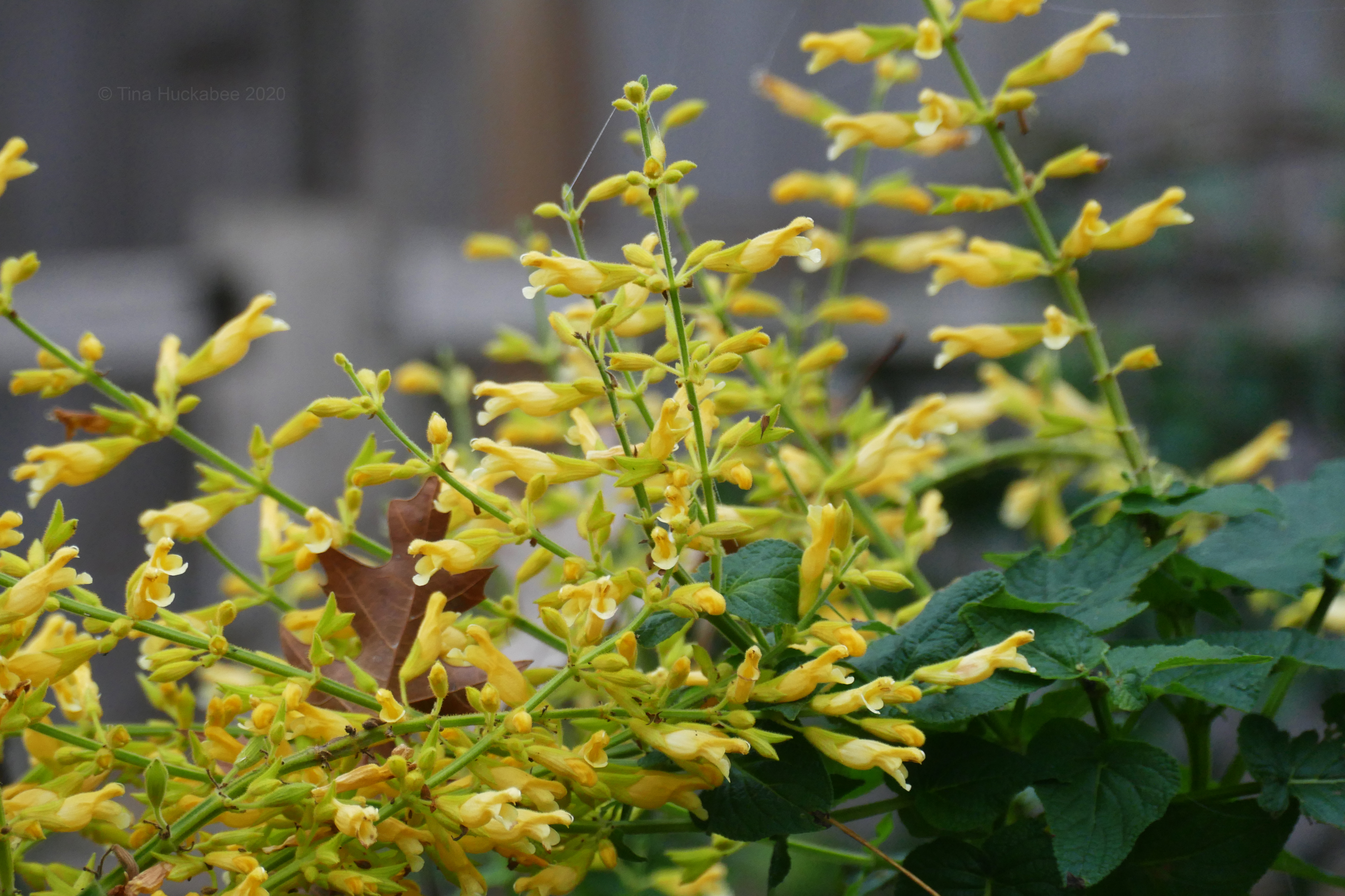 Many years ago, a generous gardener gifted to me some sprigs-with-roots of the delightful perennial and I’m always grateful for its graceful presence in my garden. Its foliage is a lush blue-green during late spring and throughout summer, the many flower spikes a cheery yellow, blooming from late summer until a hard freeze ends its season. Forsythia sage is one of the last plants in my garden to provide a big, blooming show.