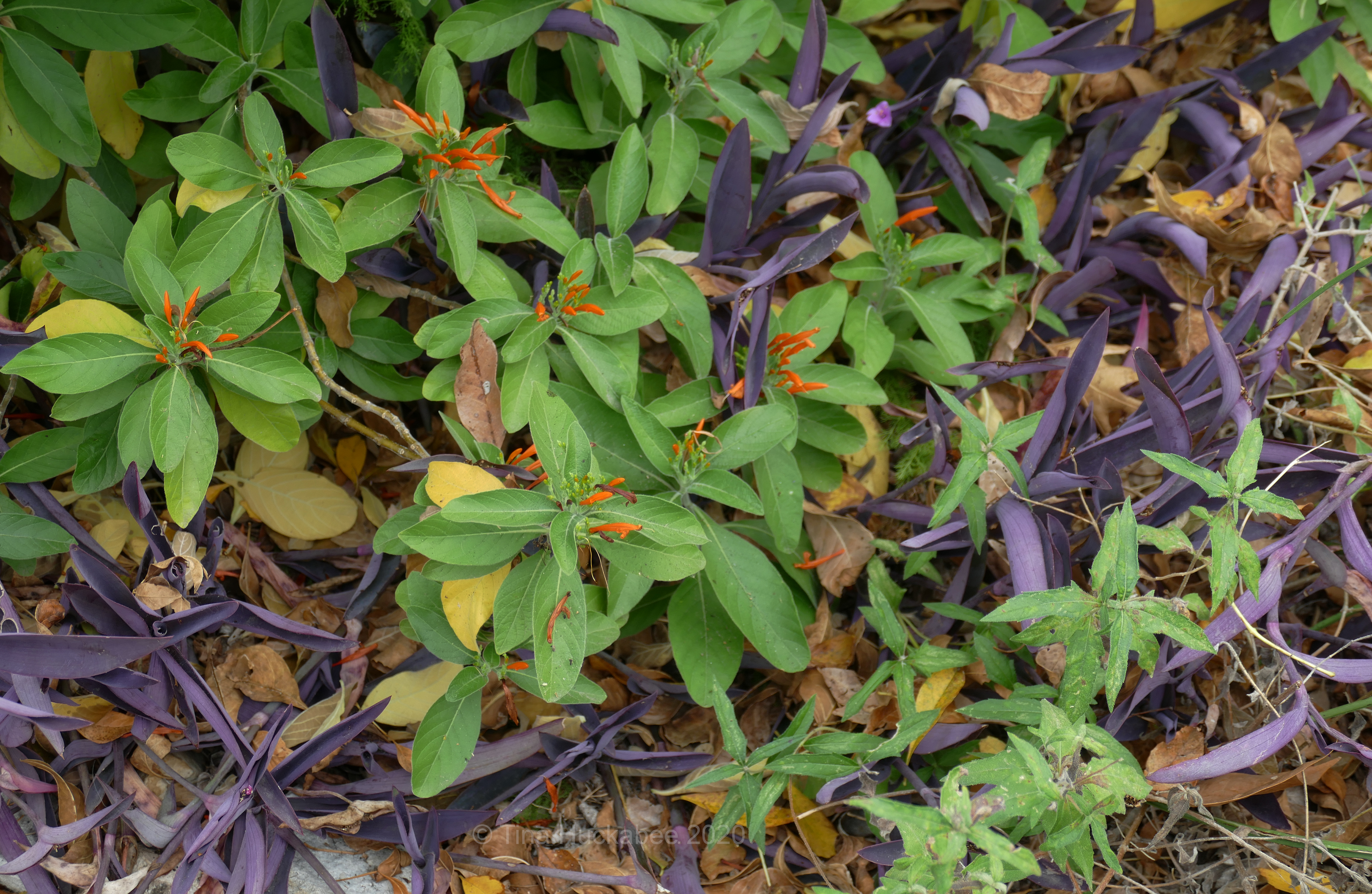 The first freeze of the year in my garden occurred recently, landing right at 32 degrees. I noticed that a bird bath in my front garden was left with a thin layer of ice that morning. The back garden, probably because of the shelter provided by the two big Red Oaks, stayed above 32, with no ice found in any water feature. I was glad for that, as the Forsythia sage is still beautiful, providing shelter and nourishment for garden beasties.