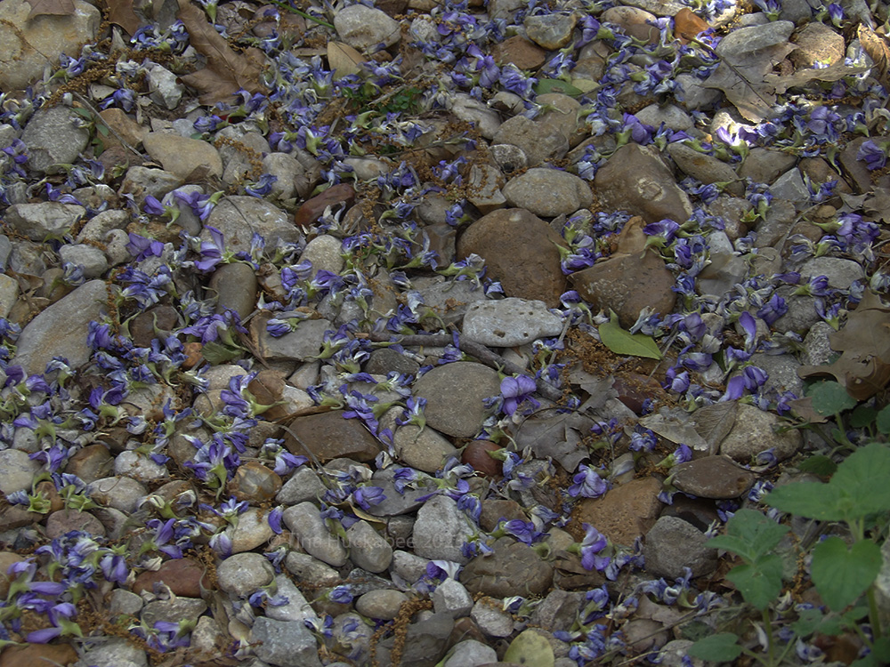 Unfortunately, the Texas Mountain Laurel doesn’t have a long bloom time. That’s the flaw in a nearly perfect plant! Blooming occurs over a 3-4 week period, faded blossom parts falling to the ground, creating lovely lavender sprinkles around the tree.