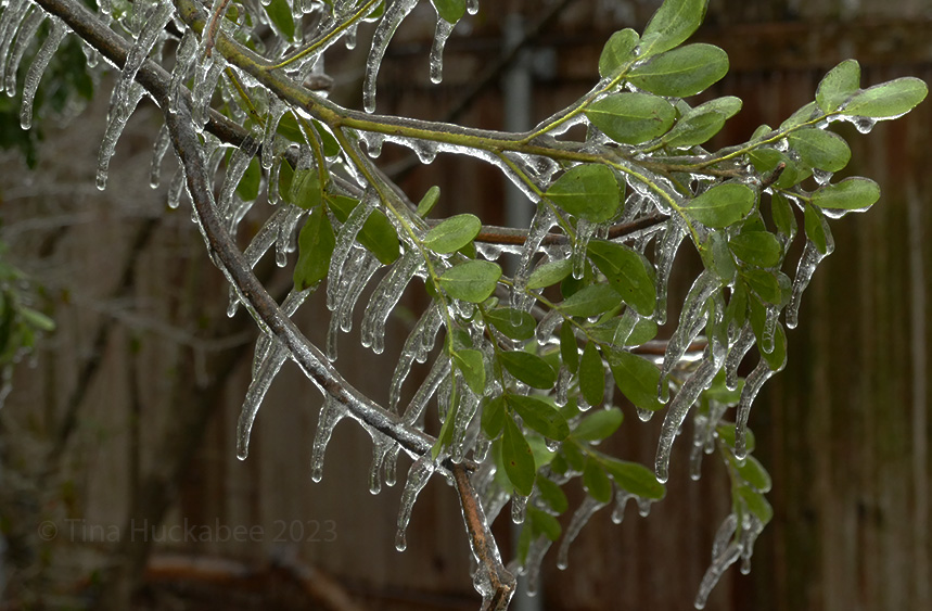 In my last post, Texas Mountain Laurel, A Seasonal Look, I wrote that these lovely small trees are year-round, stalwart evergreens, even when under ice.