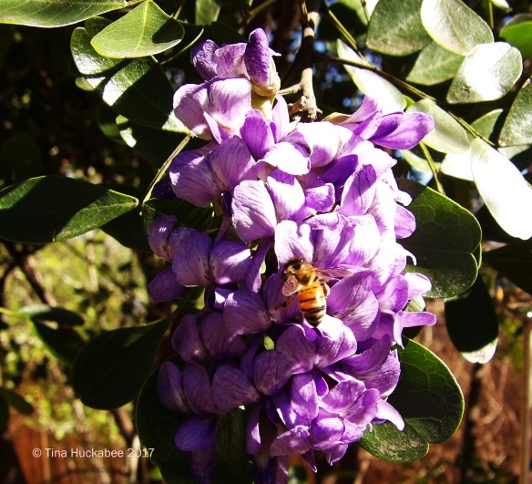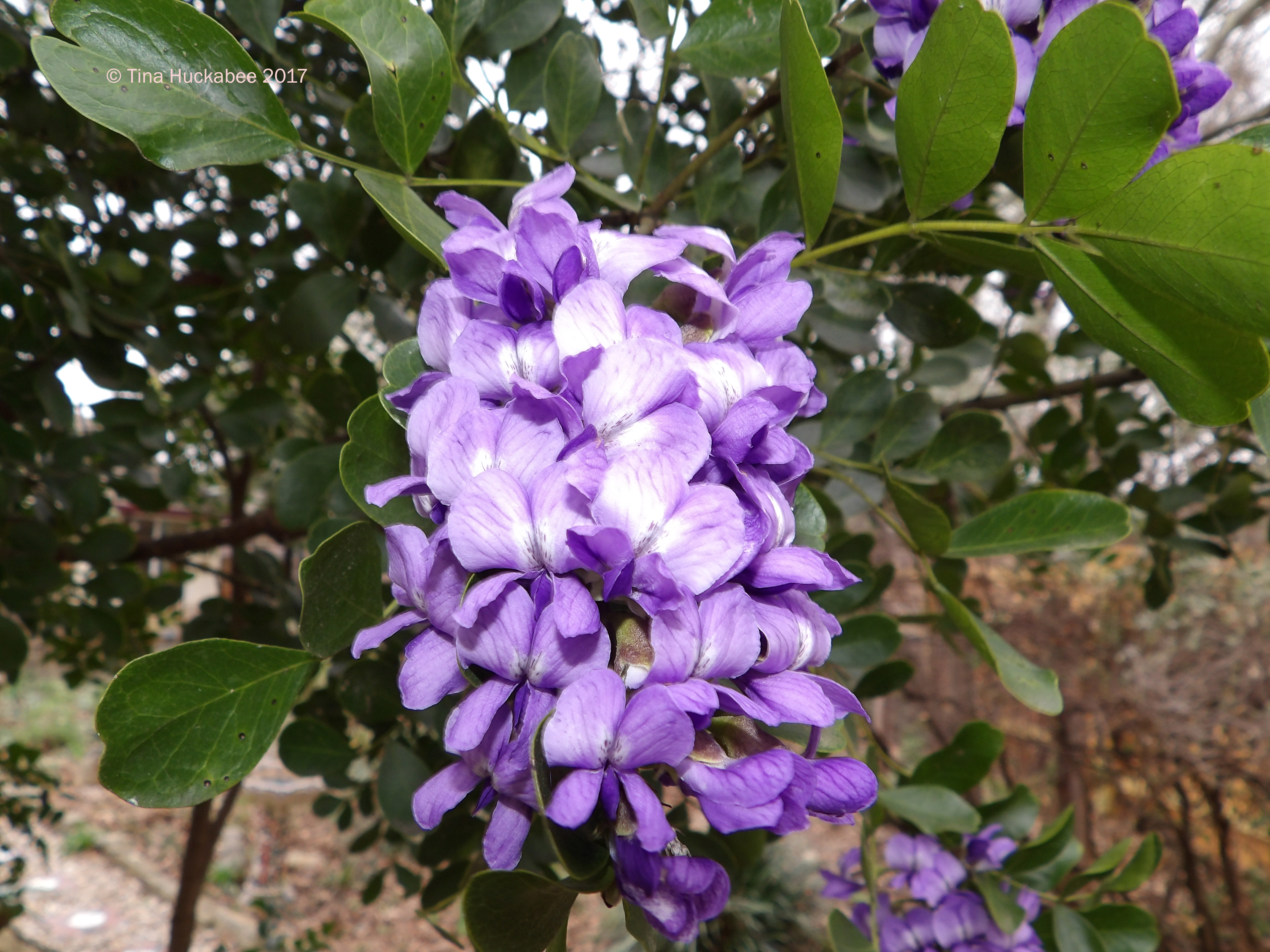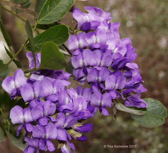 Texas mountain laurels are everywhere and why not? They are beautiful small trees year-round and stunningly beautiful trees during their short spring bloom period. The blooms are early this year, along with the awakening of so many other plants. Mild-to-warm winters and weird premature spring action has become the norm over the past couple of decades in Austin. There was a time that mountain laurels bloomed consistently in March–sometimes earlier, sometimes later–but rarely in February.