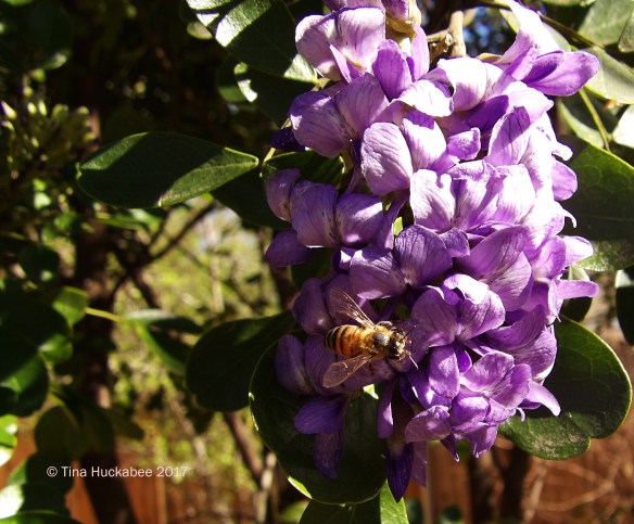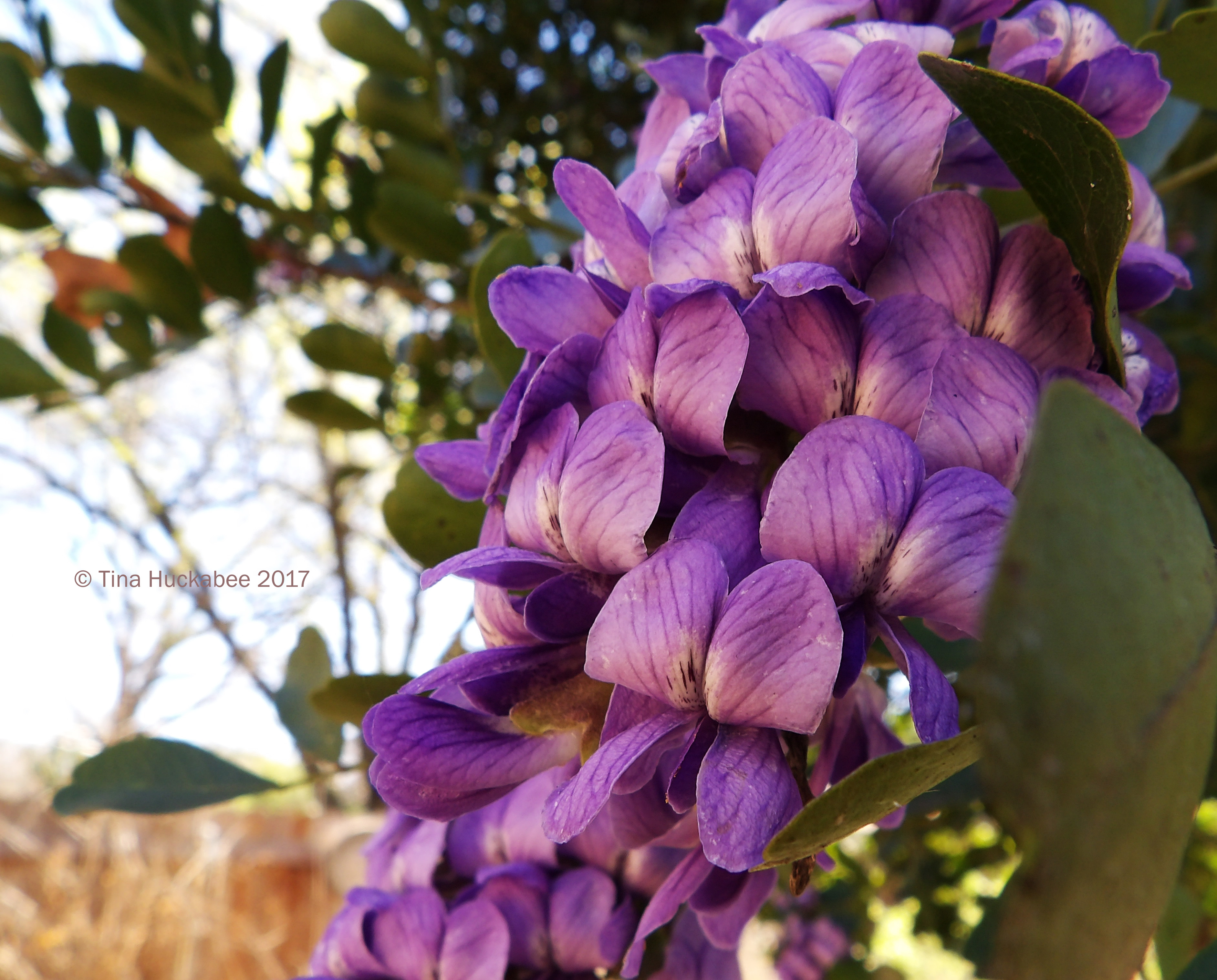 Texas mountain laurel, Sophora secundiflora, is at its peak of bloom in Austin and such a spring cliché, that I’m reluctant to add my photographic two-cents worth to the throngs of purple-powered photos appearing on FB, Nextdoor and elsewhere.