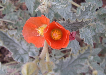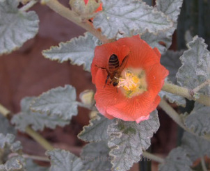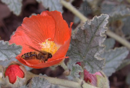 Globe mallow, Sphaeralcea ambigua, opens for honeybees each cold day, once the sun warms its petals.