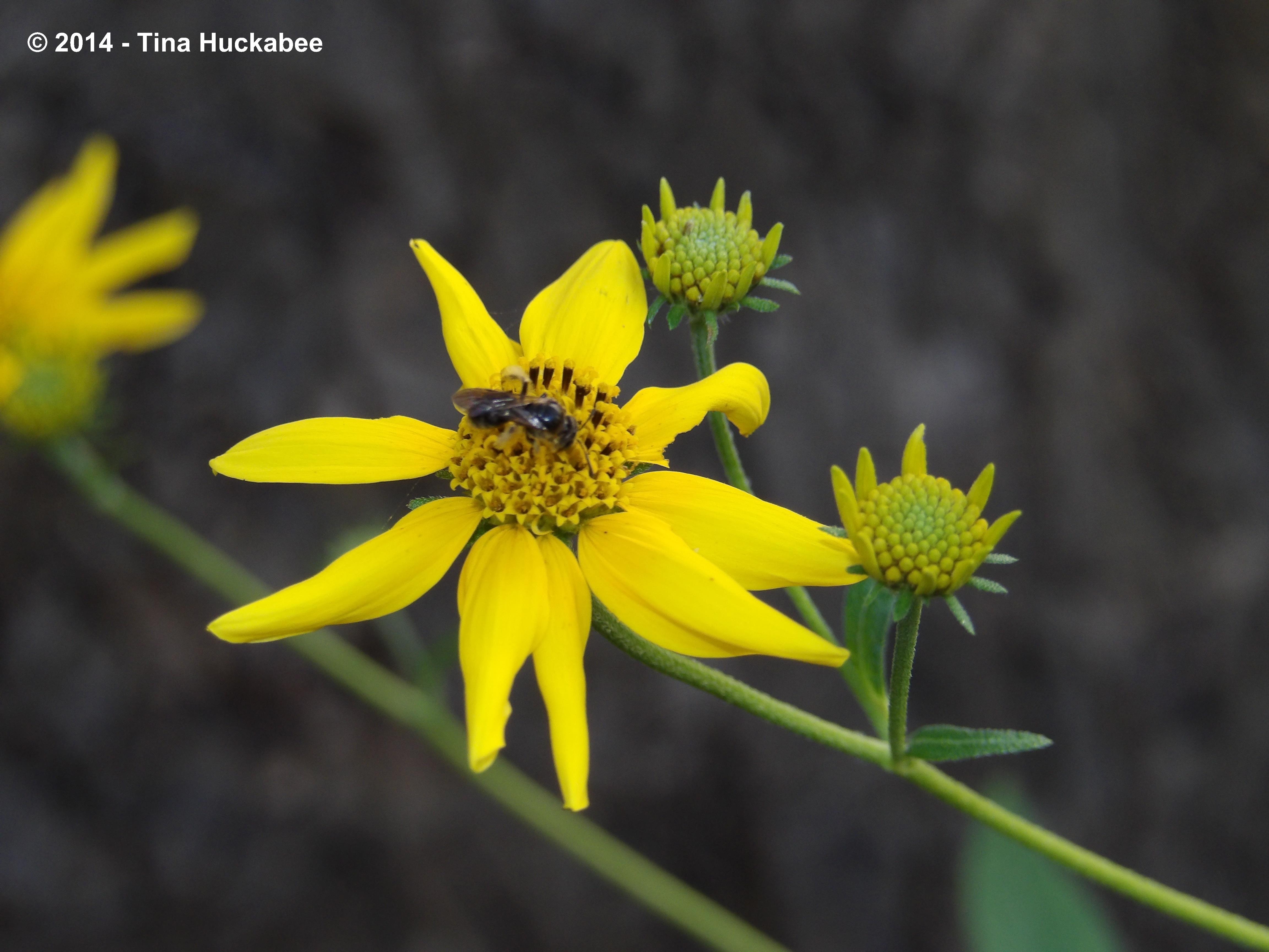 I think this little insect is a sweat bee of the Halictidae family. He/she was busily working a Goldeneye bloom. Small bloom, smaller bee. I thought that I would definitely find a photo and identifying information for this critter, but didn’t locate information which gives me total confidence on my identification. I’ll have to take a guess on this one.