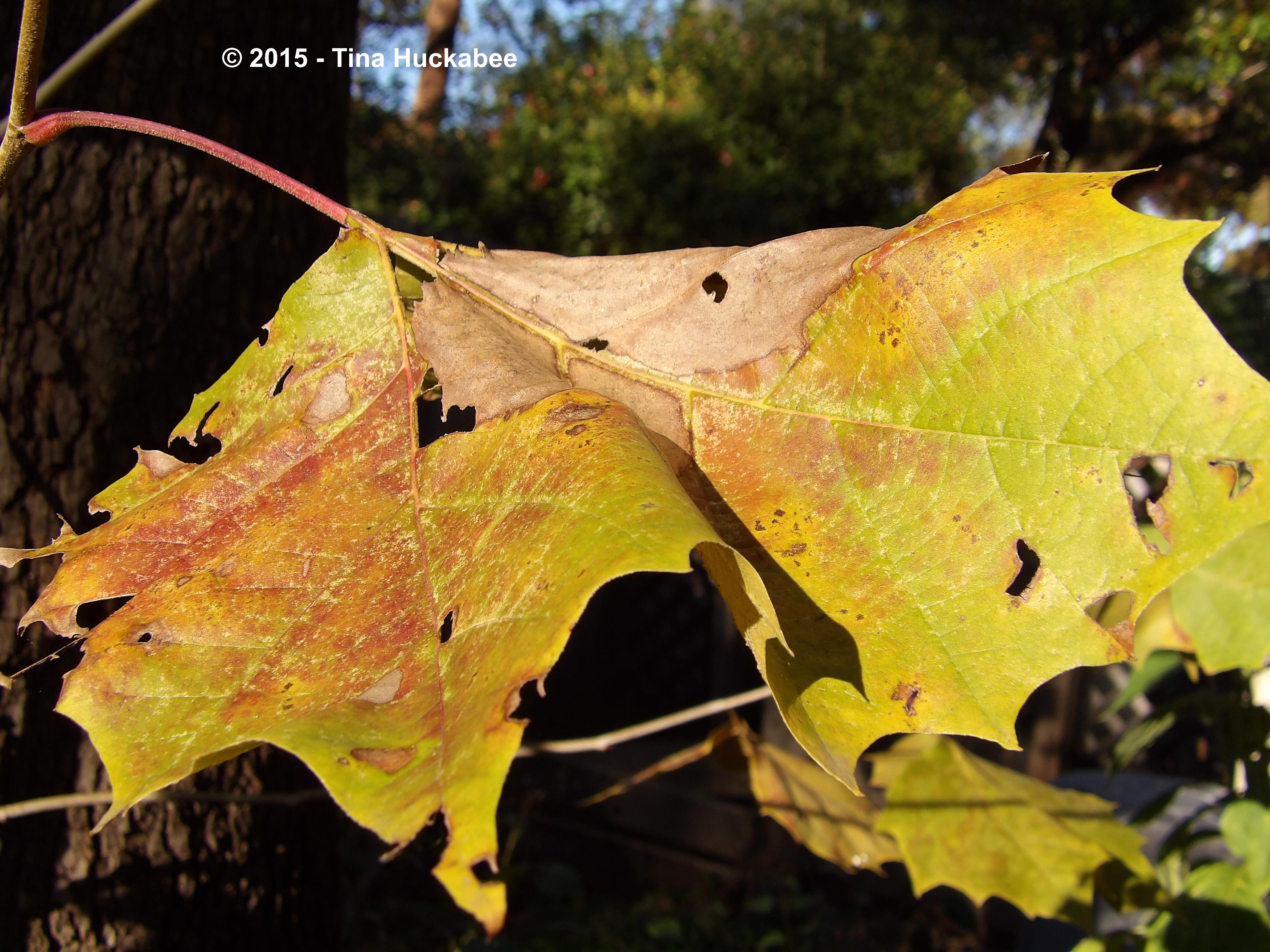 …so are the leaves on the tree. Though most are down, some of my Sycamore leaves hang tough.