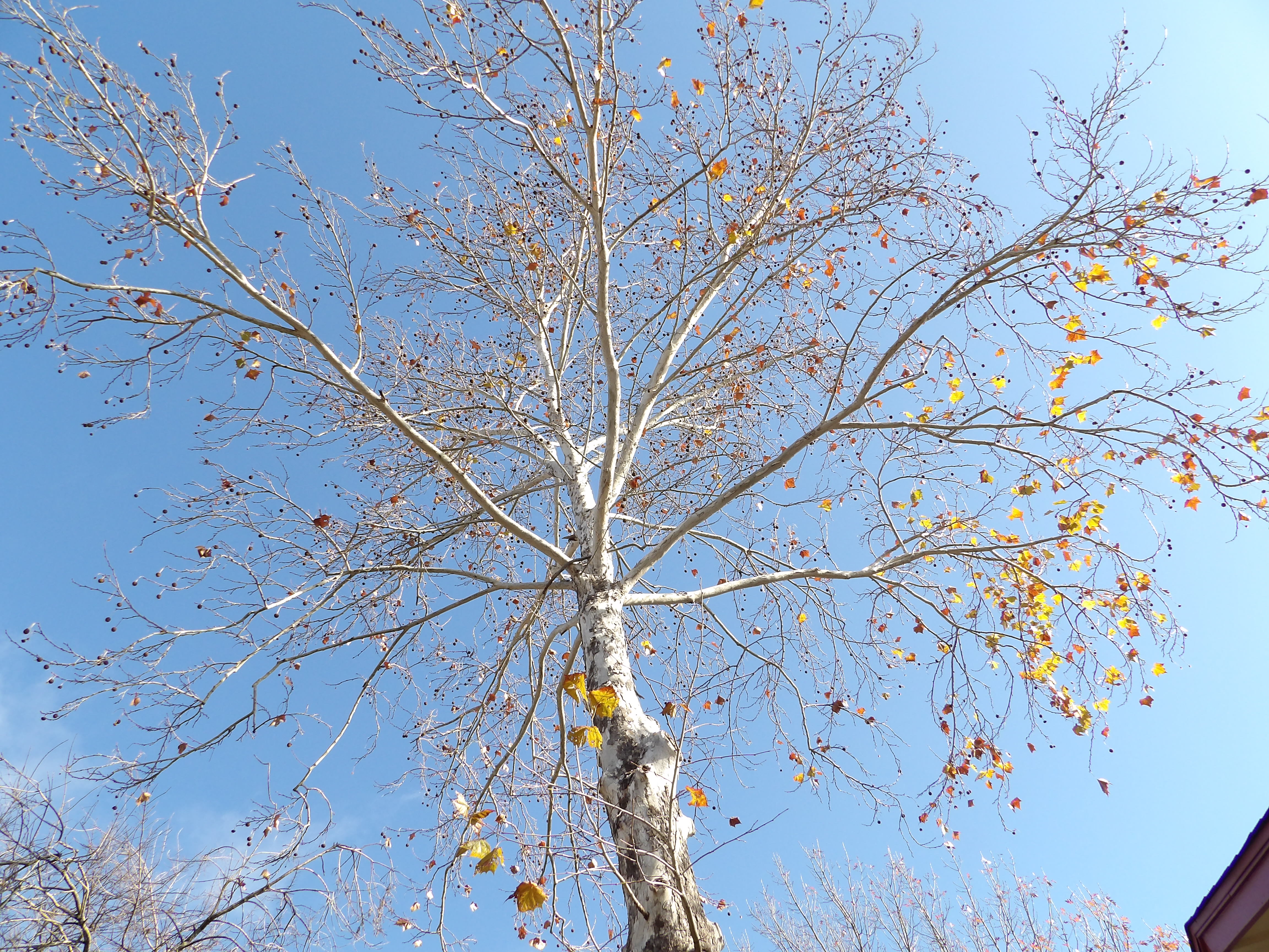 My Sycamore still hosts some leaves, both big and small, though most of its leaves are now on the ground.