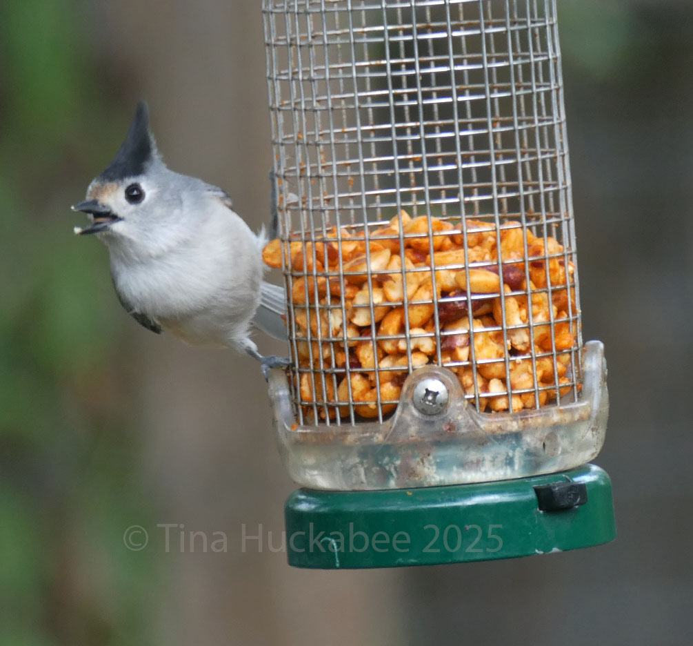 Some of the cutest birds are Black-crested Titmice. Native to Texas and northern Mexico, these adorable birds zip from tree-to-tree, branch-to-branch–and really love peanuts.