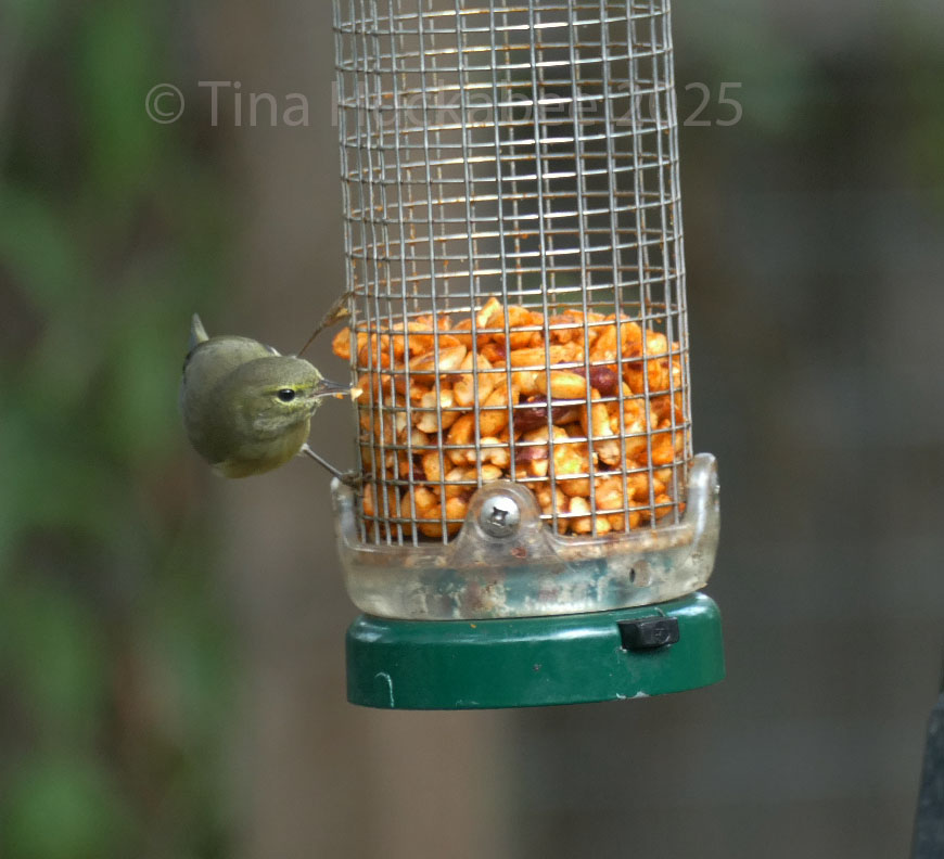 Also, Yellow-rumped Warblers and Ruby-crowned Kinglets are winter residents. So far this autumn I’ve sighted only one of the Butter Butts (Yellow-rumped Warblers) and no Kinglets in my garden. I have heard both kinds of birds nearby, so they may be snatching peanuts when I’m not looking.