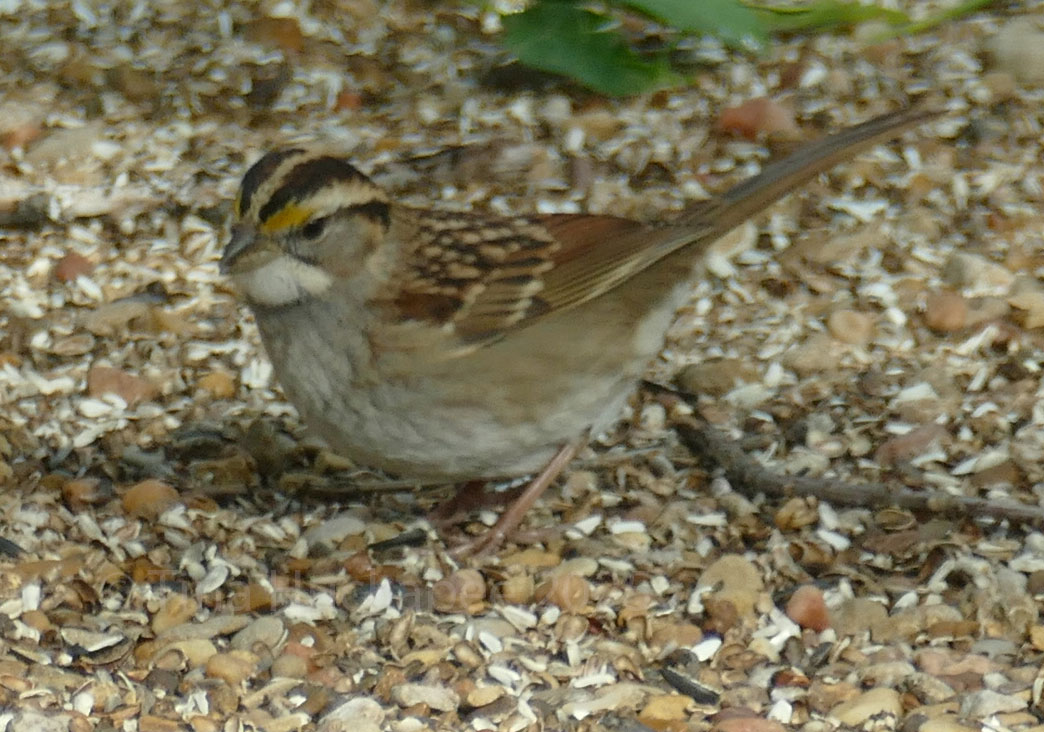 This attractive fella and a buddy spent a couple of days cleaning up sunflower and safflower seeds on the ground. A White-throated Sparrow, this part of Texas is included in its non-breeding territory. I’ve seen this species before, but they’re not common visitors to my garden.