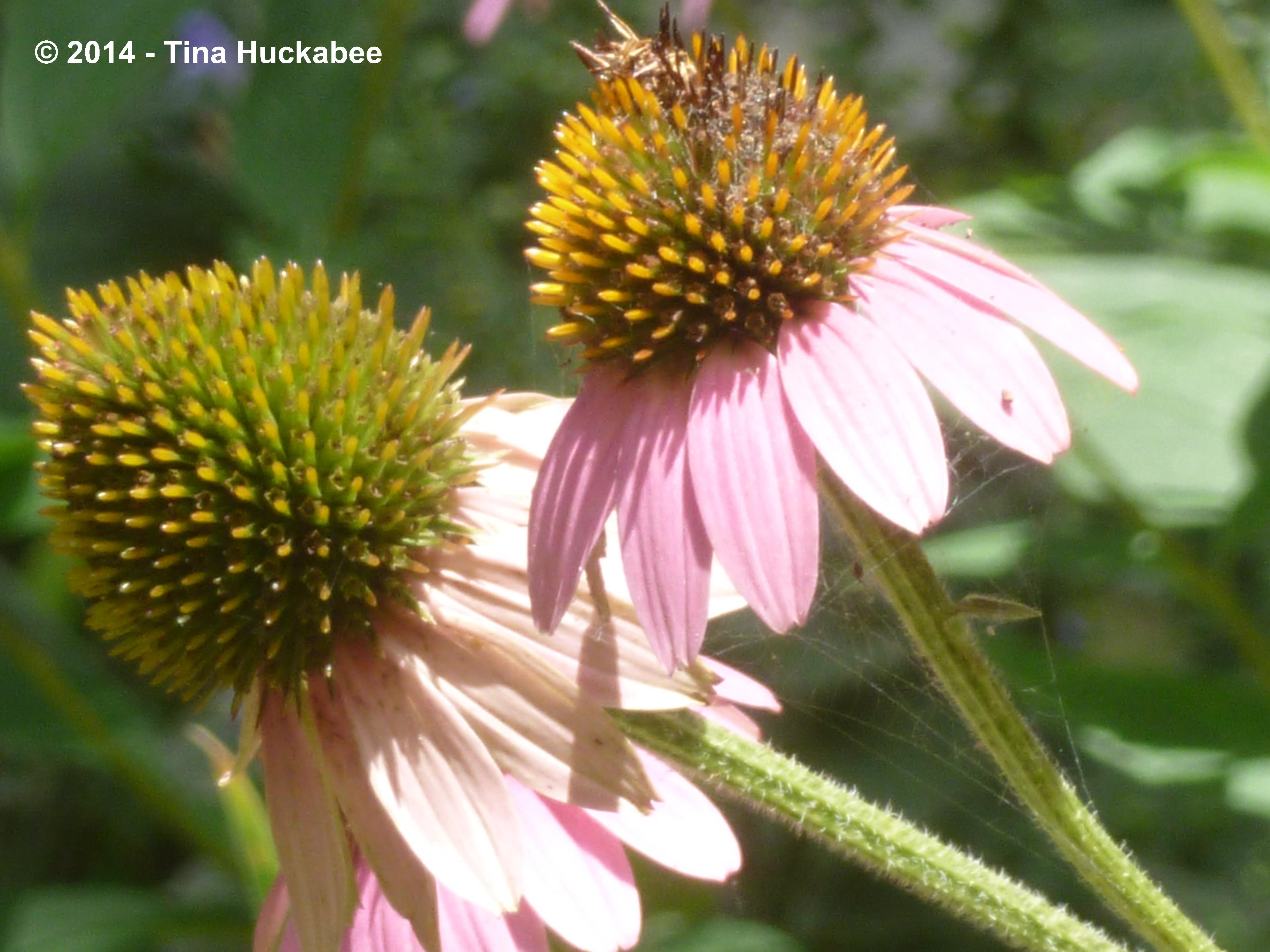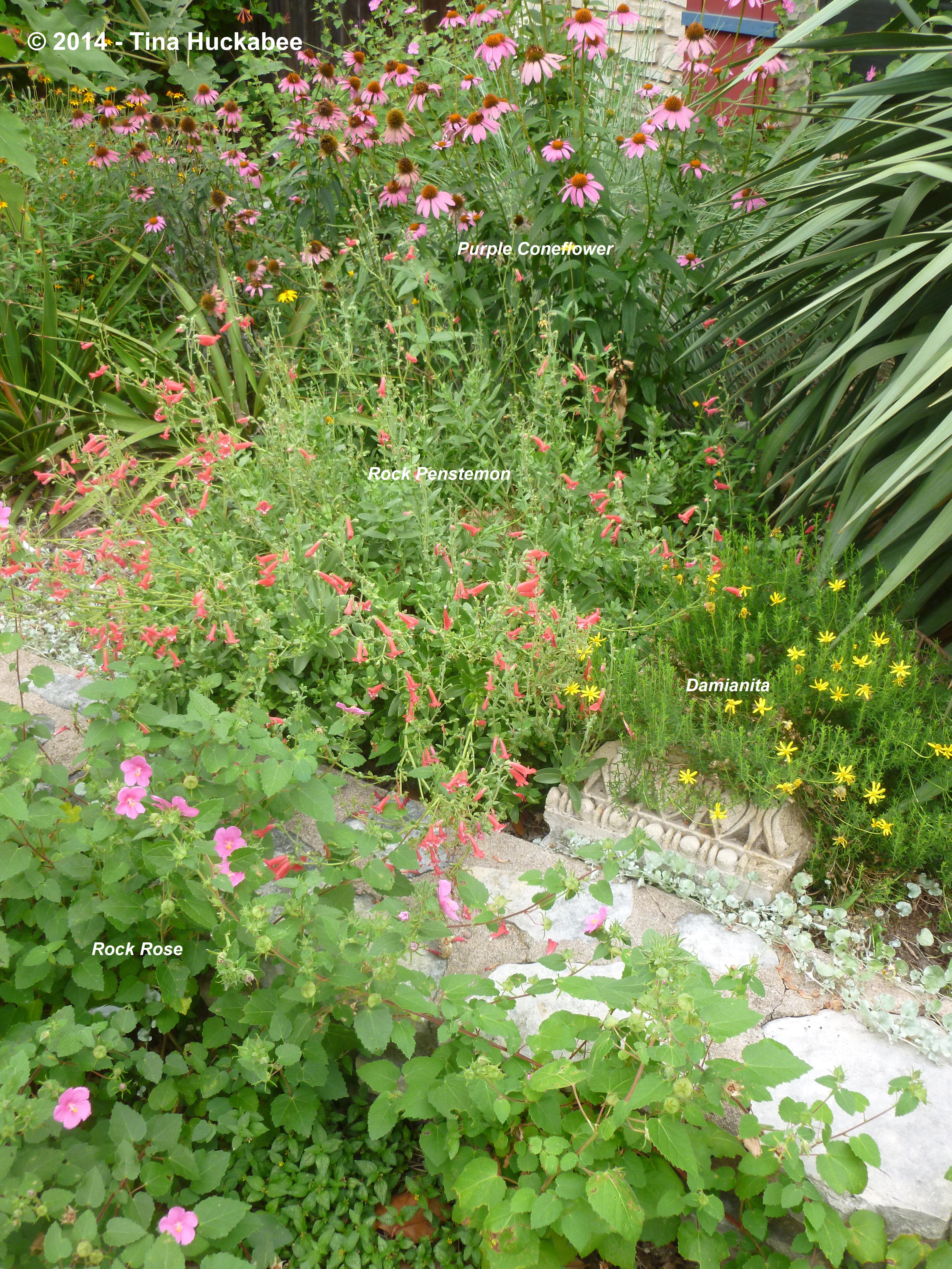 Honeybees are all over the flowers and even finches are in on the buffet, as flowers fade and seeds appear. Check out the orange pollen on this bee gal’s corbiculae, also known as pollen baskets, or in Tina-speak, pollen pantaloons. The pollen pantaloons on this bee are the puffy orange pillows situated on either side of the bee.