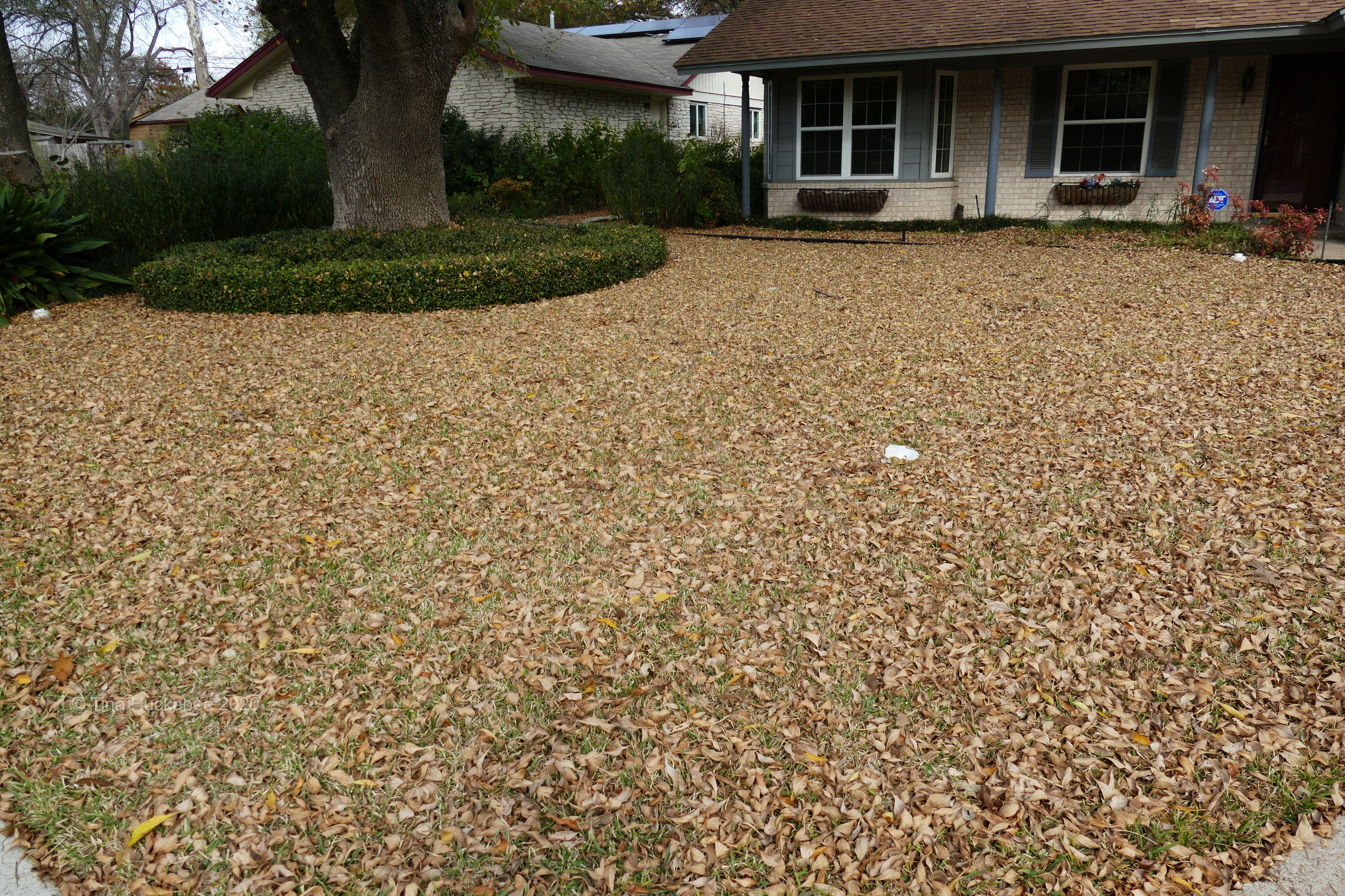 Fallen leaves drift to the grass from a stunning native Bur oak tree in the southeast corner of SIL’s lot. During the growing season, this corner is quite shady because of that Bur oak; ferns are lush and happy there and in time, other shade-loving perennials will feel right at home, too. In autumn, the leaves cover the grass; they’re huge! SIL is planning to hire an eco-friendly lawn company who uses electric equipment rather than gas-powered and who mulches leaves, rather than bagging for pick-up.