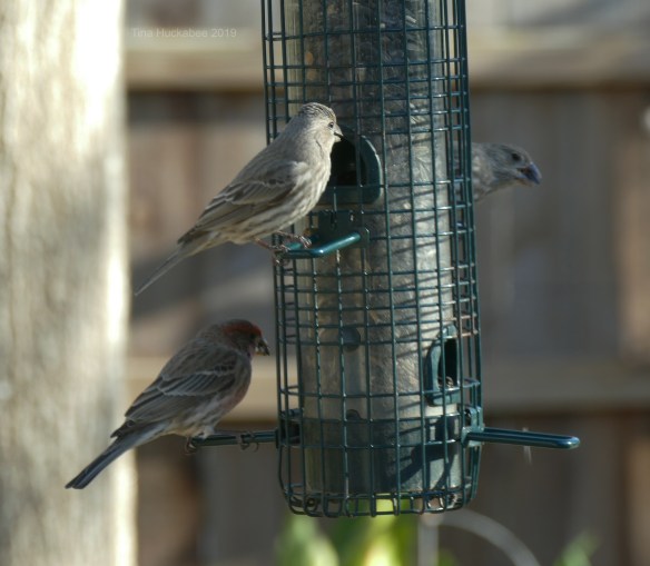 In the center of the back yard towers an aging Arizona ash tree. Someday, it will be gone, but for now, it provides glorious shade in summer and plenty of perching opportunities for birds, including the many Screech Owls that have nested in our owl nesting box, which sits in our Shumard red oak tree, about 60 to the left of the photo.