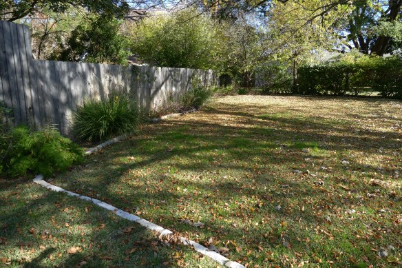Maybe vines (blackberries, pretty please!) will grow there one day as the fence is in full sun, all year-round. There’s talk about planting some fruit trees in that section of the lot, taking advantage of life-giving full sun.