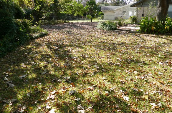Fallen leaves drift to the grass from a stunning native Bur oak tree in the southeast corner of SIL’s lot. During the growing season, this corner is quite shady because of that Bur oak; ferns are lush and happy there and in time, other shade-loving perennials will feel right at home, too. In autumn, the leaves cover the grass; they’re huge! SIL is planning to hire an eco-friendly lawn company who uses electric equipment rather than gas-powered and who mulches leaves, rather than bagging for pick-up.