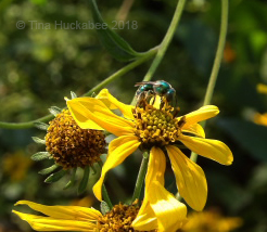 Camouflaged by color and quiet, this common butterfly only caught my attention with slight movement as it work about its floral dinner table. Often more yellow and regularly in rapid flight, this one was gentle in motion as it nectared on the Prairie goldeneye bloom.
