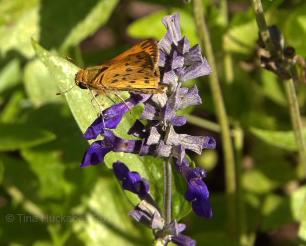 Fiery skipper (Hylephila phyleus) nectaring on White mistflower.