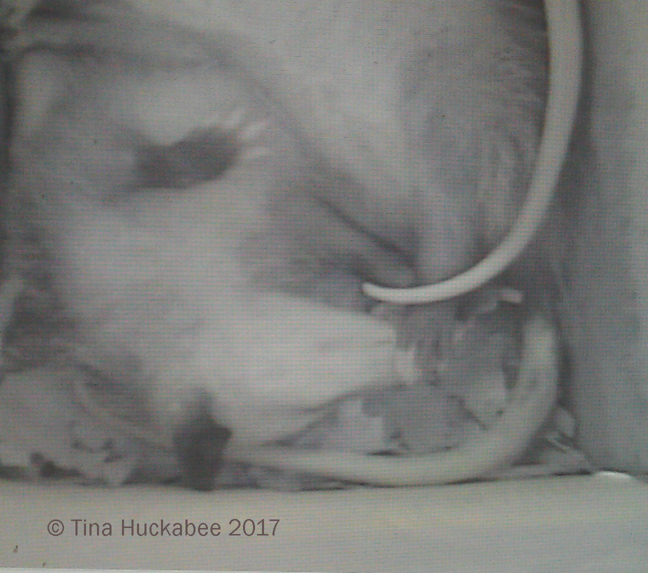 For reference, you’re looking at the top of her head and down her back. Her eye is just above my last name.
