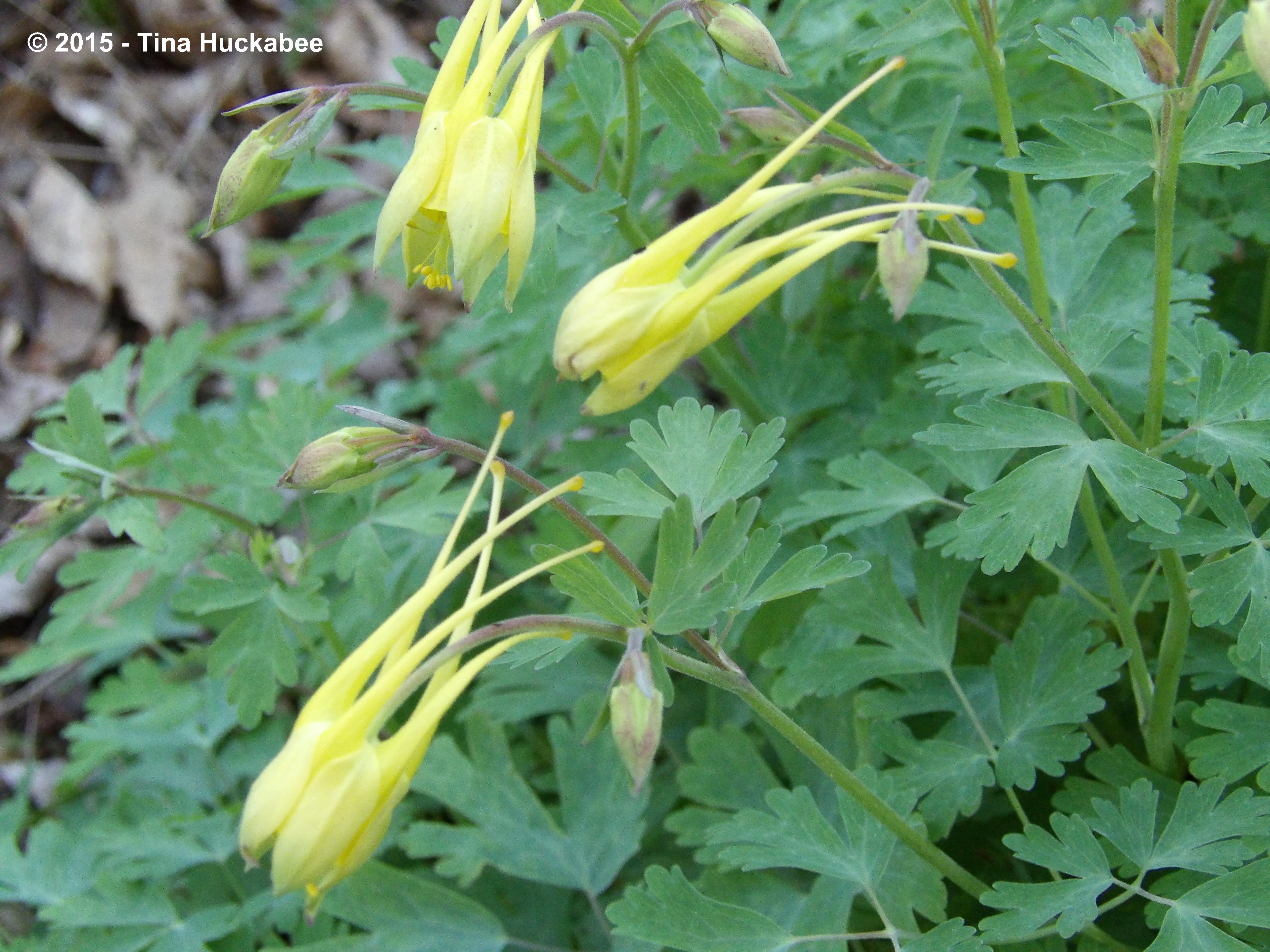 …and the smaller, grayer-leafed, Wild Red Columbine, Aquilegia canadensis.