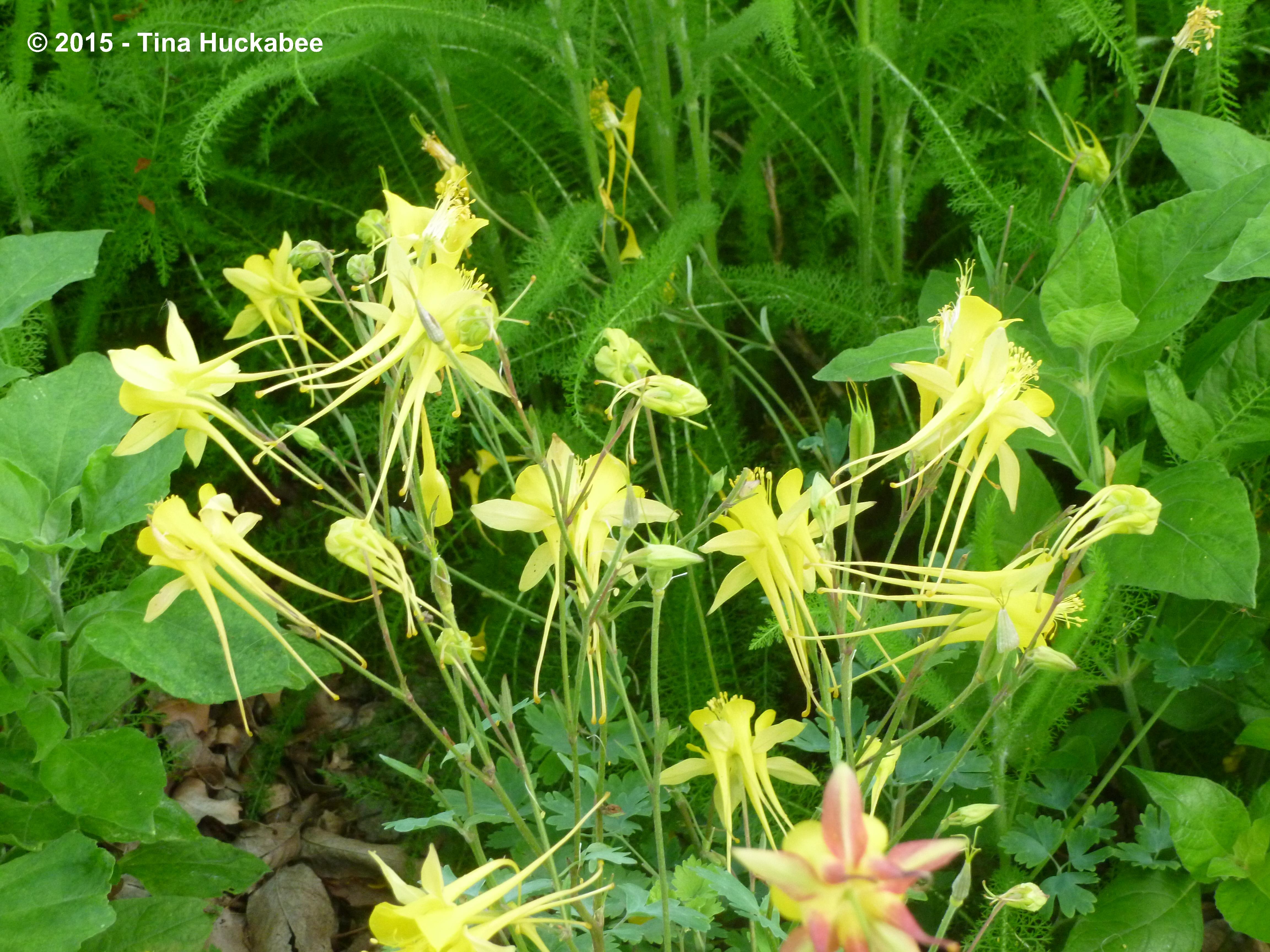 I adore the natural hybrids that have developed in my gardens which are produced from the co-mingling between A. chrysantha and the A. canadensis. Thanks pollinators! The petals on these hybrids are usually yellow with blushes of red to pink on the sepals and the spurs.