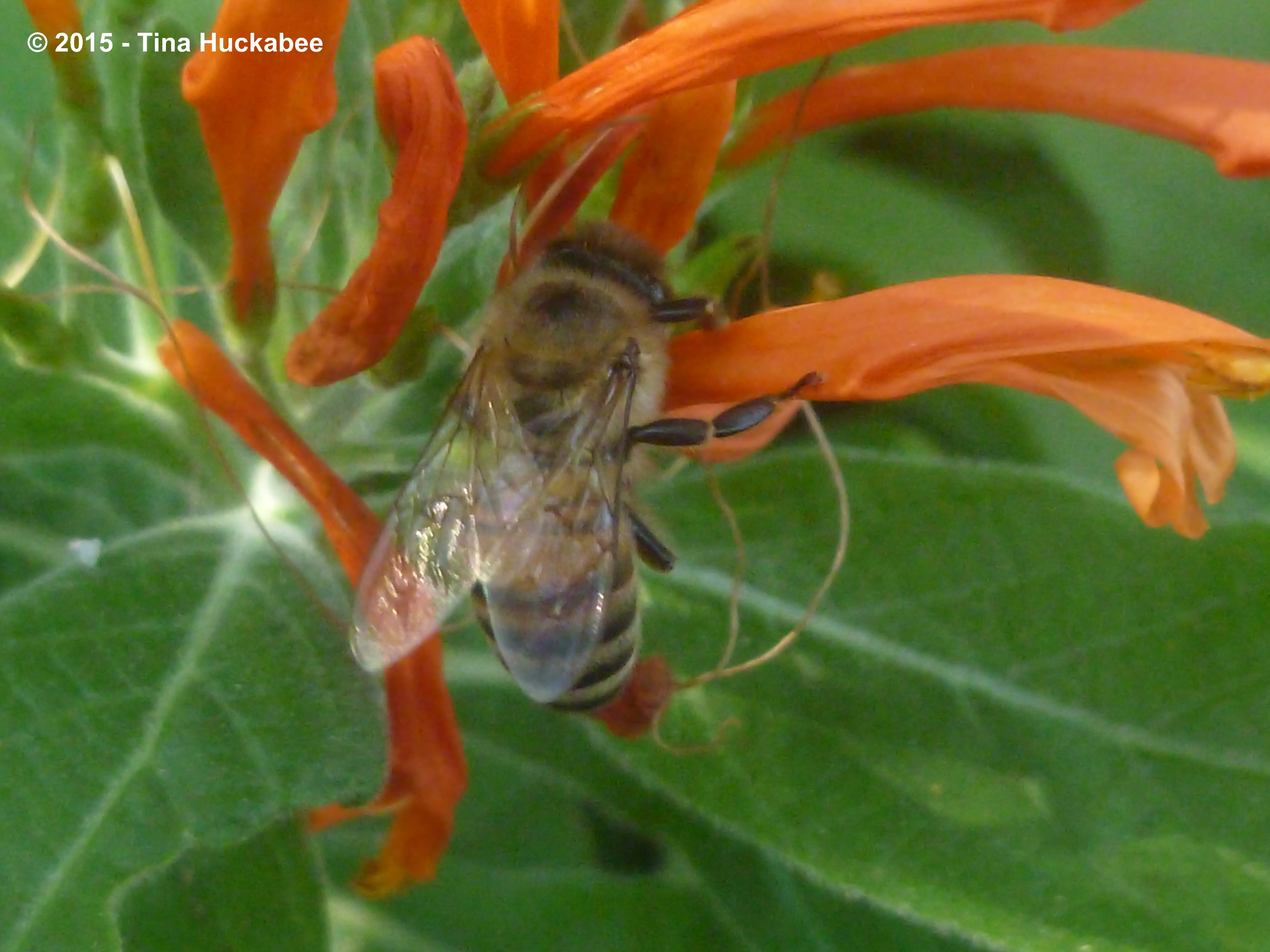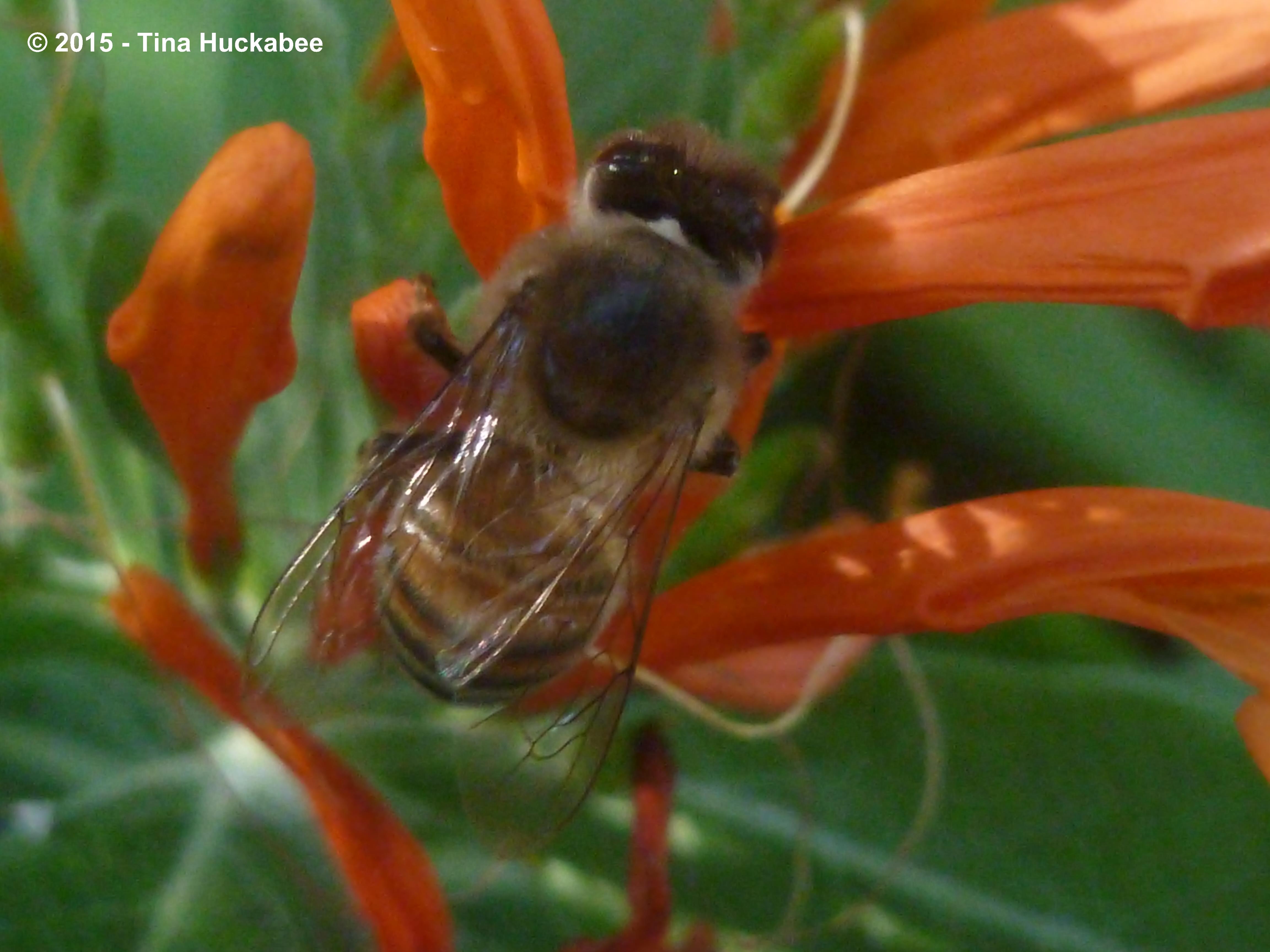 My girls are very gentle–I can sit very close the entrance and they pay no attention to me and that’s even more true as the foragers are at flowers–they have a job to do, I guess and I’m not as interesting as flowers.
