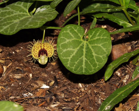 The winged wonders rest in trees and tall shrubs, basking in the sunshine; occasionally, one drifts to the garden, flitting through the plants with strong wing beats, adding its beauty to the local landscape. The host plant for these gorgeous insects are pipevine plants, Aristolochia species; I’ve never grown any myself and I didn’t I know where pipevines resided that might be the nursery for the Pipevine Swallowtails visiting my garden. But in the last couple of years, I noticed several White Veined Dutchman’s pipe, Aristolochia fimbriata in a nearby neighbor’s garden and have assume that recent Pipevine Swallowtails wafting through my garden hail from her Dutchman’s Pipe.