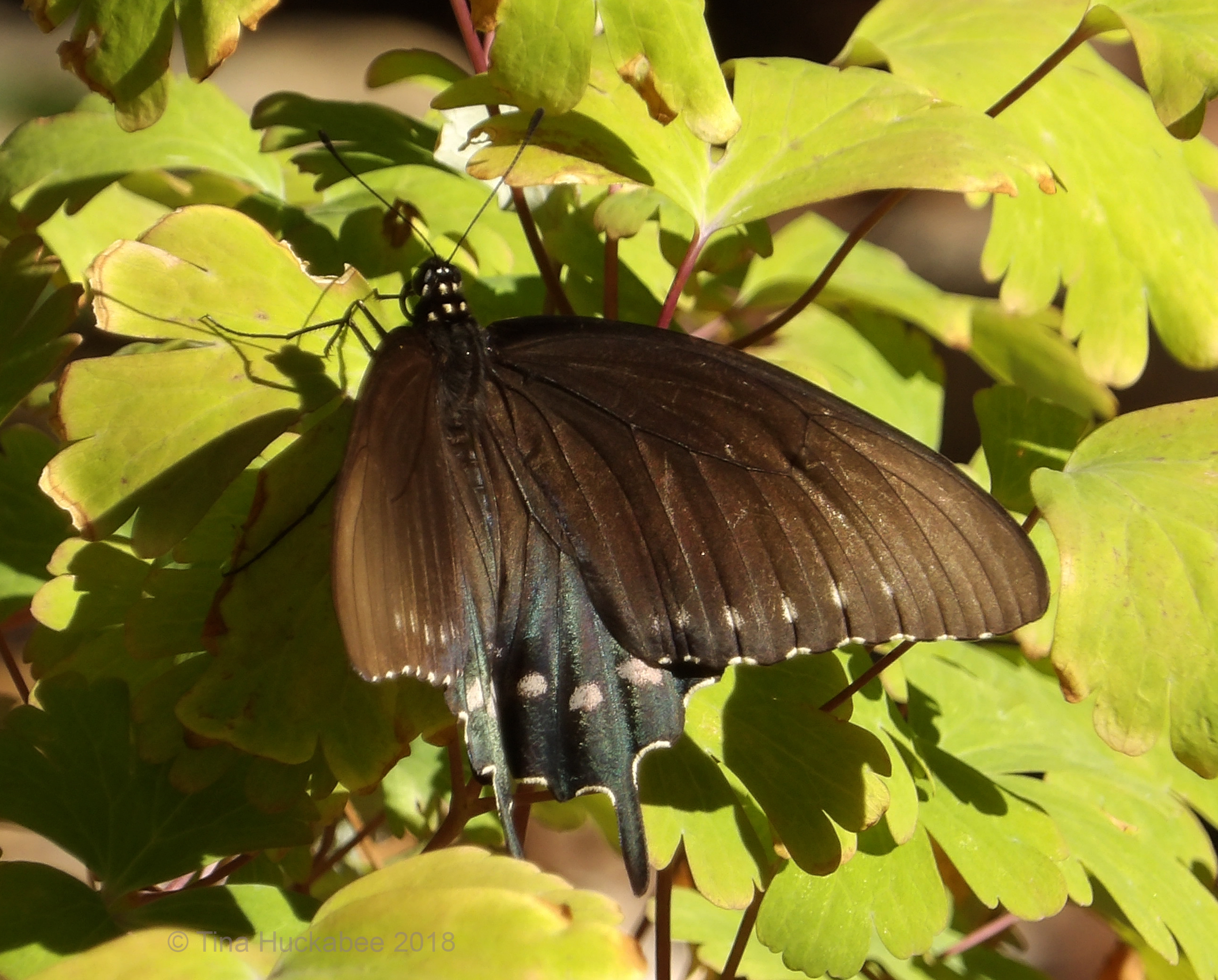 Over the years, I’ve enjoyed observing many a Pipevine Swallowtail, Battus philenor, drifting through my garden, blue-tipped wings highlighted by the brilliant Texas sun.